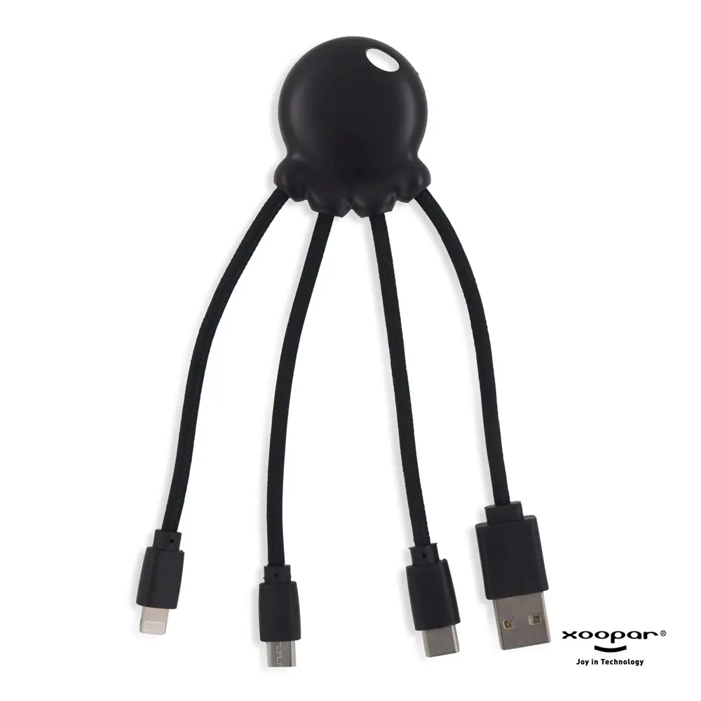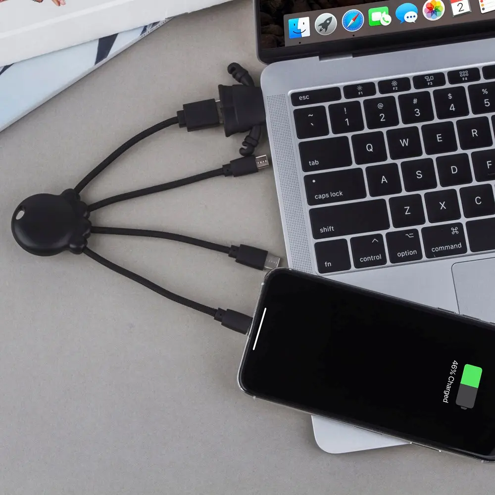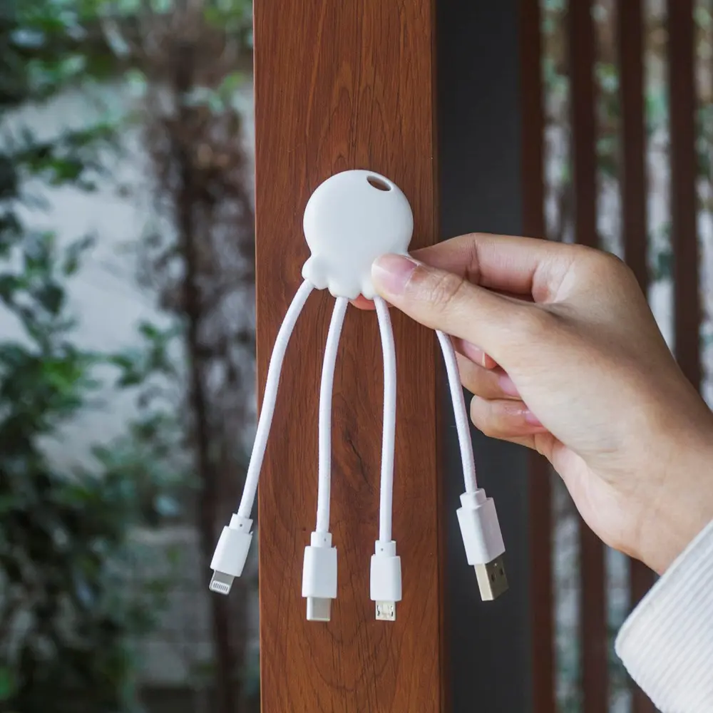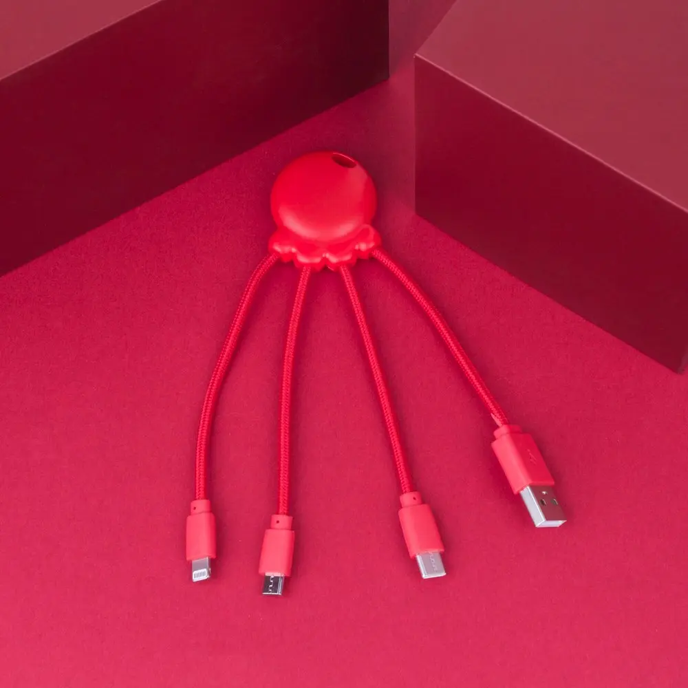Elevate your brand's eco-conscious image with the Eco Octopus Charging Cable, a versatile and sustainable multi-charger perfect for promotional giveaways. Crafted from RPET cables and recycled plastic body, it boasts 61% recycled content based on item weight, ensuring an environmentally friendly choice that aligns with corporate sustainability goals.