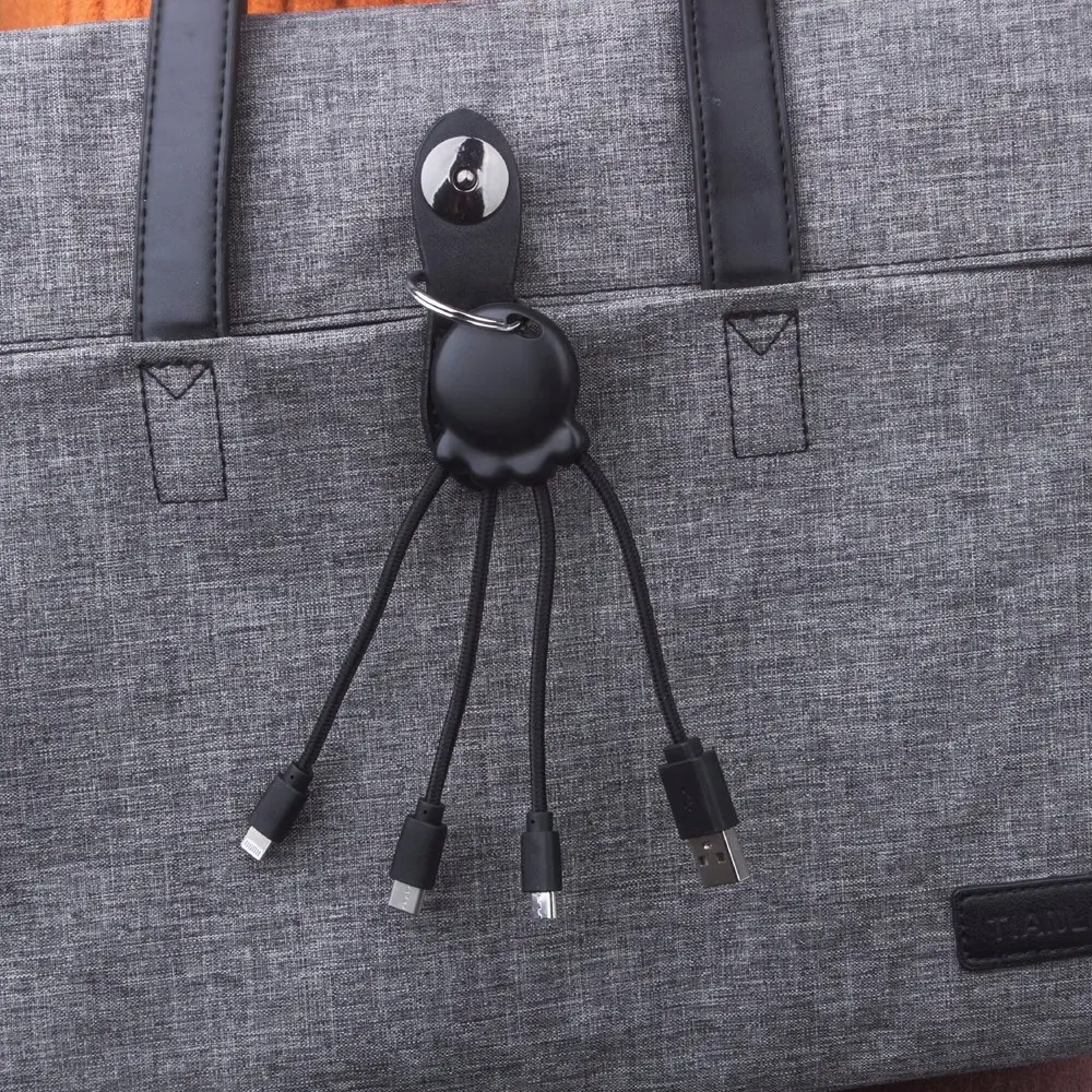 This compact cable features one USB input and three interchangeable connectors, allowing seamless charging for various devices—ideal for desks, cars, bags, or travel. Its durable design keeps your recipients powered up while showcasing your logo through customizable imprinting, making it a smart tool for marketing campaigns and events.