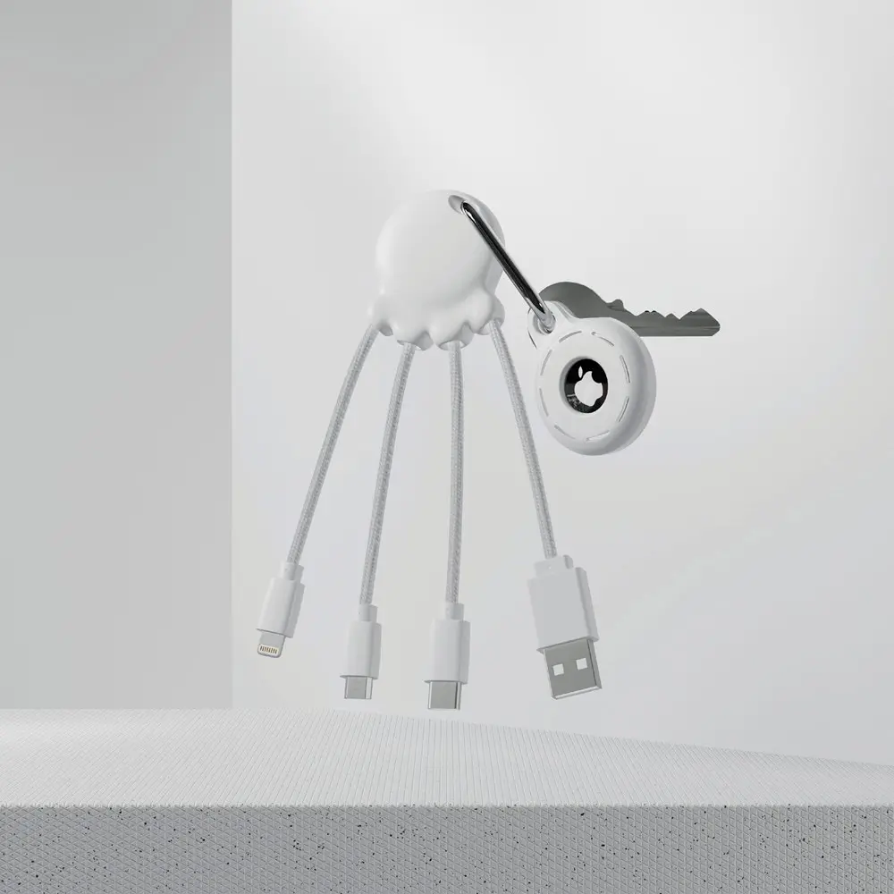 Discover the eco charging cable octopus, a perfect blend of functionality and environmental responsibility. Crafted from RPET for the cables and recycled plastic for the body, this charger features one USB input connector paired with three versatile output options—Lightning, USB-C, and micro-USB—ensuring compatibility with a wide range of devices. Charge smartphones, tablets, or other gadgets effortlessly, reducing the need for multiple cables and promoting sustainable habits in your daily routine.