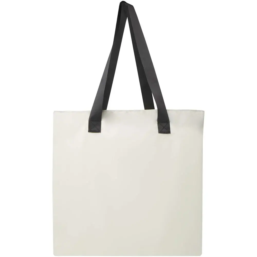 Crafted from GRS certified recycled polyester, free from PVC, this tote supports environmental responsibility. Perfect for companies aiming to promote sustainability in their marketing efforts. Customize with logo printing to create impactful promotional giveaways that align with green initiatives, enhancing your brand's image among clients and event attendees.