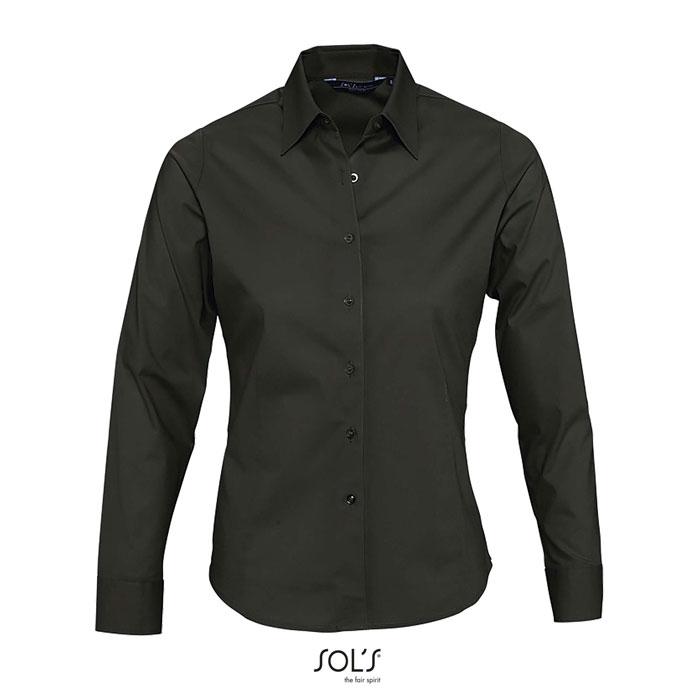 Elevate your brand with this premium women's stretch long-sleeved shirt from SOL'S EDEN collection. Crafted from 97% cotton and 3% elastane 140 stretch poplin, it offers exceptional comfort, flexibility, and a professional fitted cut that flatters every silhouette.
