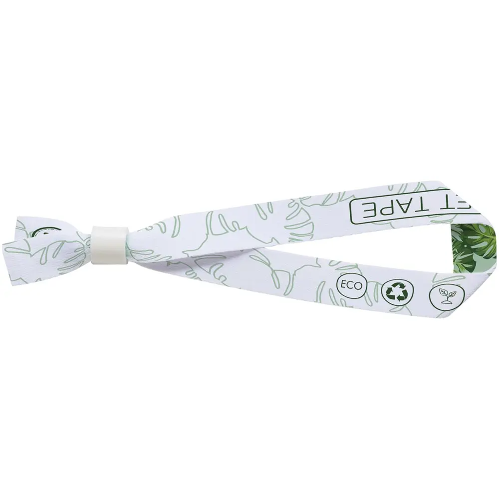 Enhance your event security with this eco-friendly recycled PET festival bracelet, featuring a secure recycled PET lock. Made from recycled polyester and plastic, it measures 33 x 1.5 cm, offering a comfortable fit for all attendees. As a sustainable choice, it aligns with your brand's commitment to environmental responsibility, appealing to eco-conscious clients and partners.