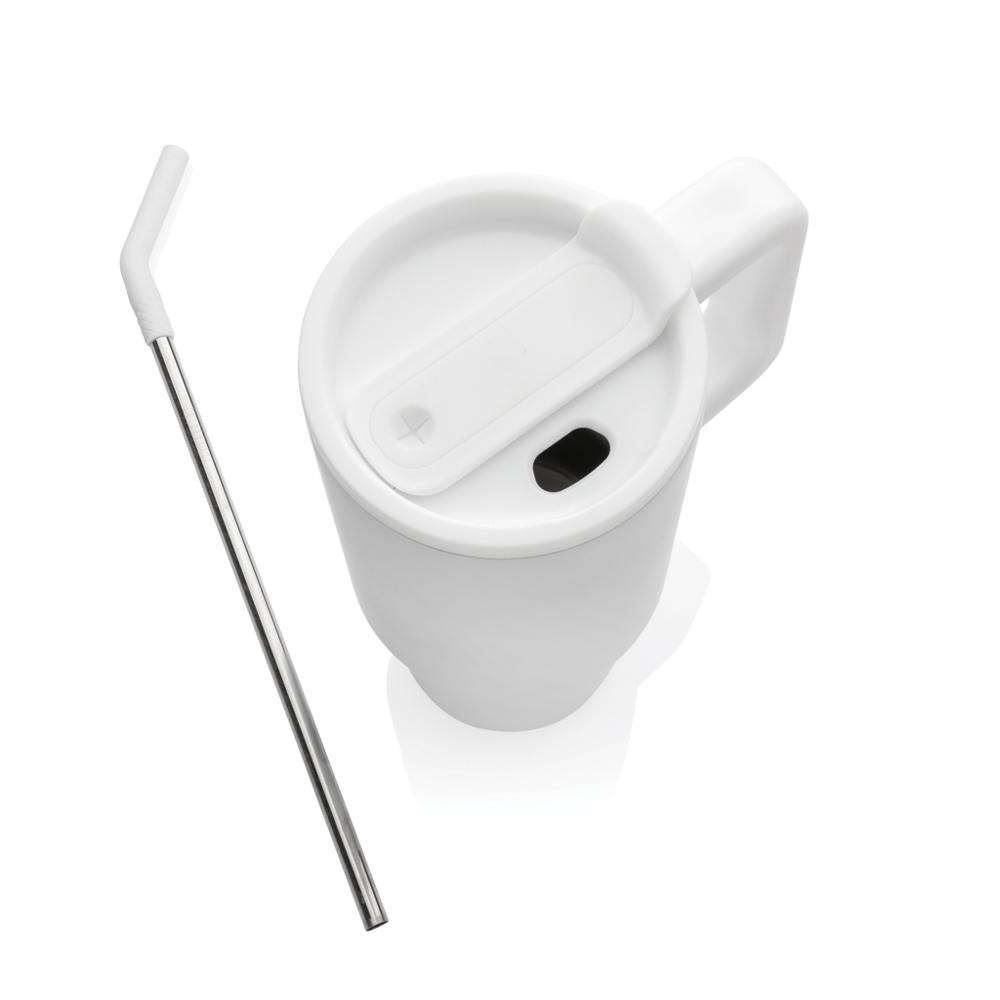 Double-walled vacuum insulation keeps drinks hot for 5 hours or cold for 15 hours, ensuring long-lasting refreshment. The spill-secure screw-on lid offers versatile sipping options: a convenient spout or included recycled steel straw with silicone tip. BPA-free and built to last, it's perfect for large-scale customization with your logo—impress clients and boost brand visibility at events.