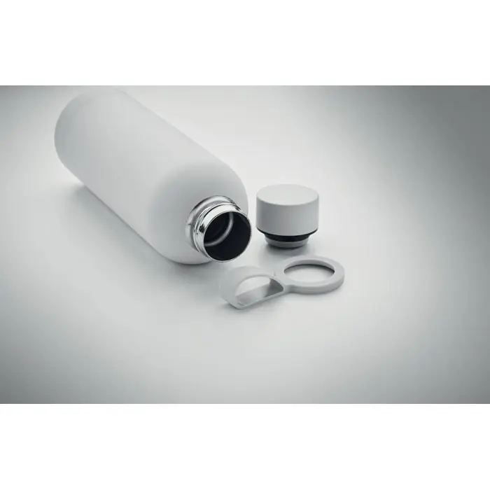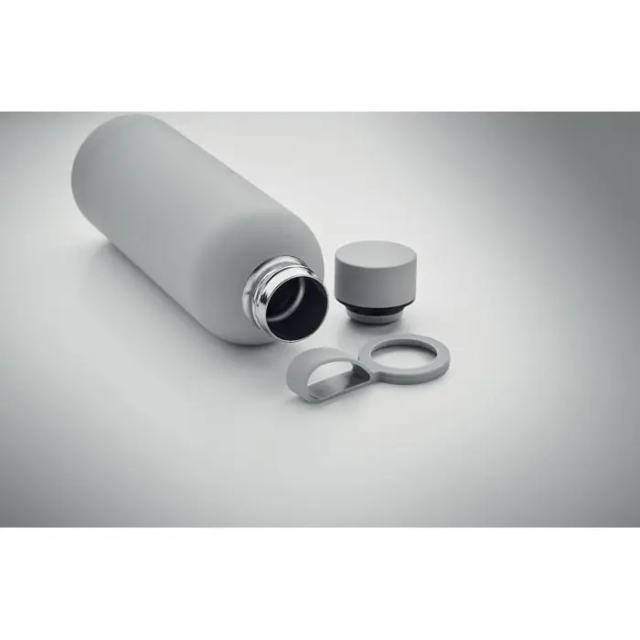 Discover our sustainable double wall vacuum insulated bottle, crafted from 90% recycled stainless steel and 10% stainless steel. This 500 ml capacity option features a practical rubber finish and silicone handle for comfortable, secure grip during daily use or on-the-go events.