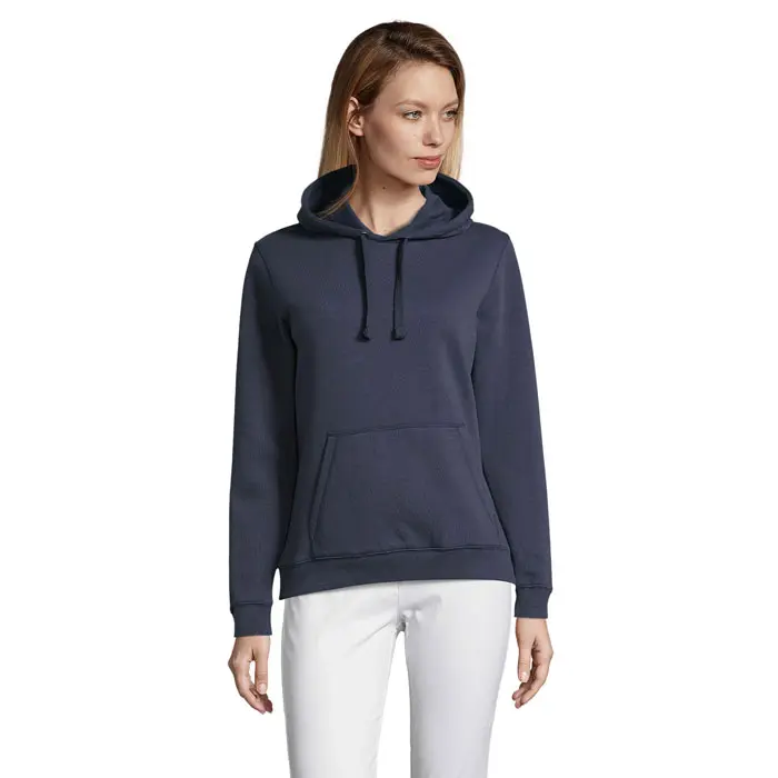 Elevate your brand with the Spencer Women Hooded Sweatshirt from Sol's, the perfect promotional apparel for marketing campaigns and events. Crafted from 80% ringspun cotton and 20% polyester with a brushed lining and 100% cotton fleece exterior (280 LSF Low Shrinkage Fabric), it offers superior comfort, durability, and shape retention—ideal for everyday wear and long-lasting impressions.