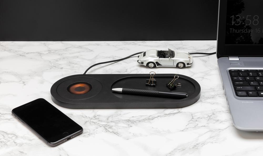 Charge faster and more stylishly with this modern 10W wireless charger in transparent design. The charger has an integrated tray to keep your desk tidy and organised. The charger supports 10W fast charging to charge your phone twice as fast as most other wireless chargers in the market. Wireless charging compatible with Android latest generations, iPhone 8 and up. Input: 5V/2A. Wireless Output: 9V/1.1A 10W. Including 150 cm micro USB cable. Registered design®