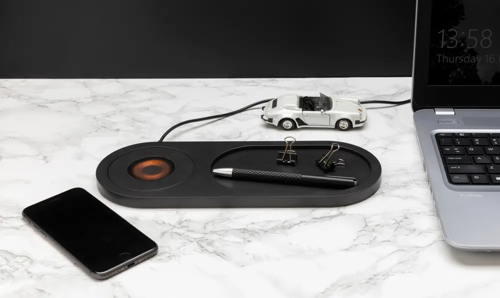 Discover a sleek solution for on-the-go professionals and event attendees. This 10W wireless charger features an integrated tray that keeps devices and small essentials organized, reducing desk clutter and enhancing workspace efficiency. Ideal for promotional giveaways, it doubles as a practical tool that reinforces your brand message every time it's used.