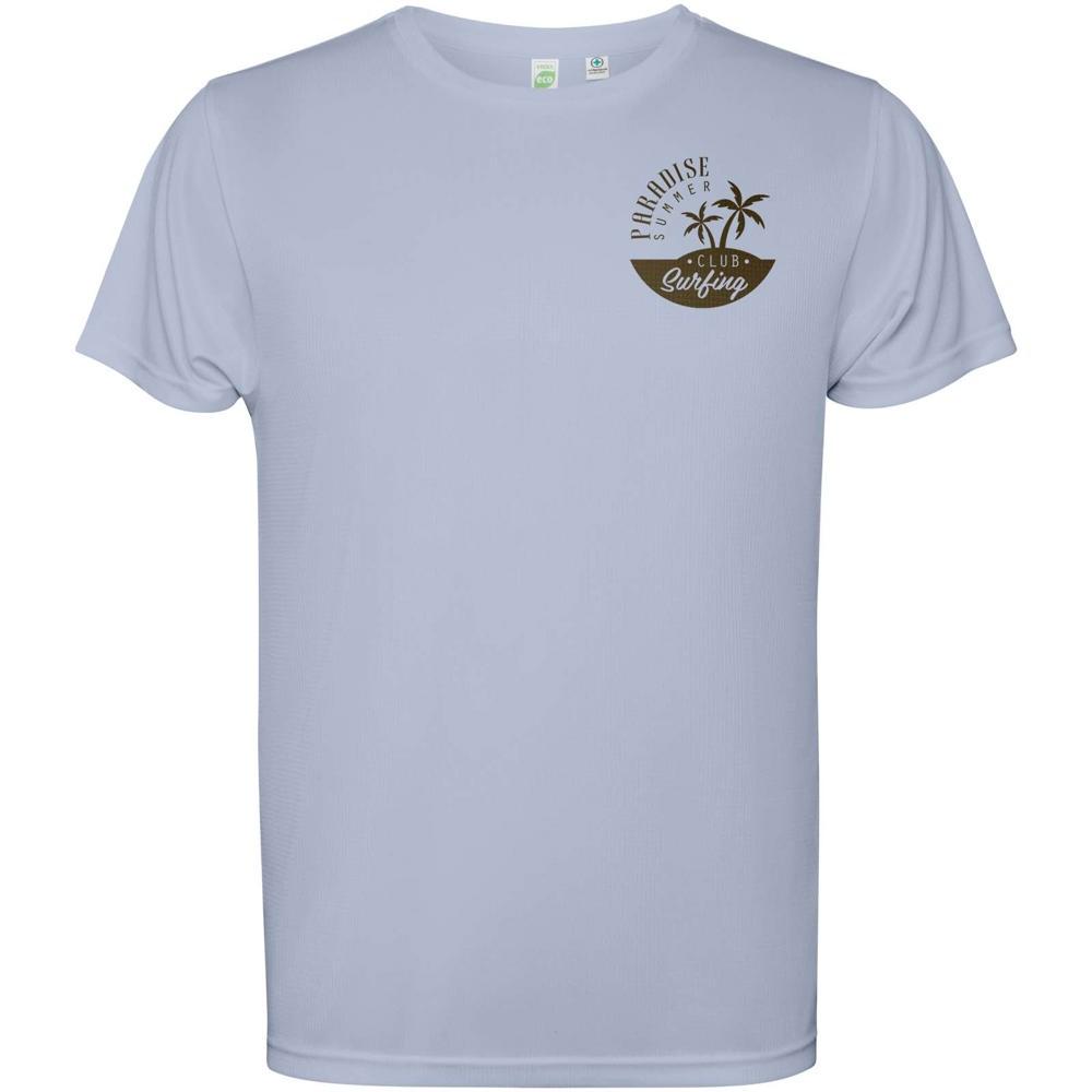 Elevate your brand with the Estoril short sleeve men's t-shirt, a high-performance technical garment perfect for marketing giveaways and events. Crafted for superior comfort, it features a collar with matching seams, a back hem slightly longer than the front for enhanced coverage during movement, and forward-shifted side seams that reduce friction and improve fit.