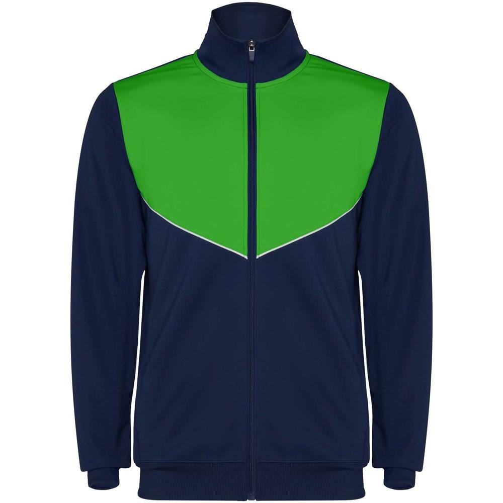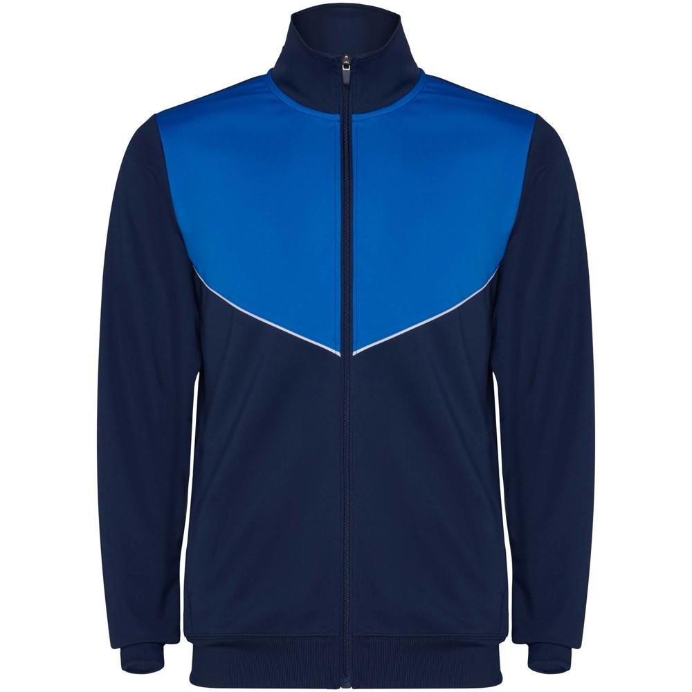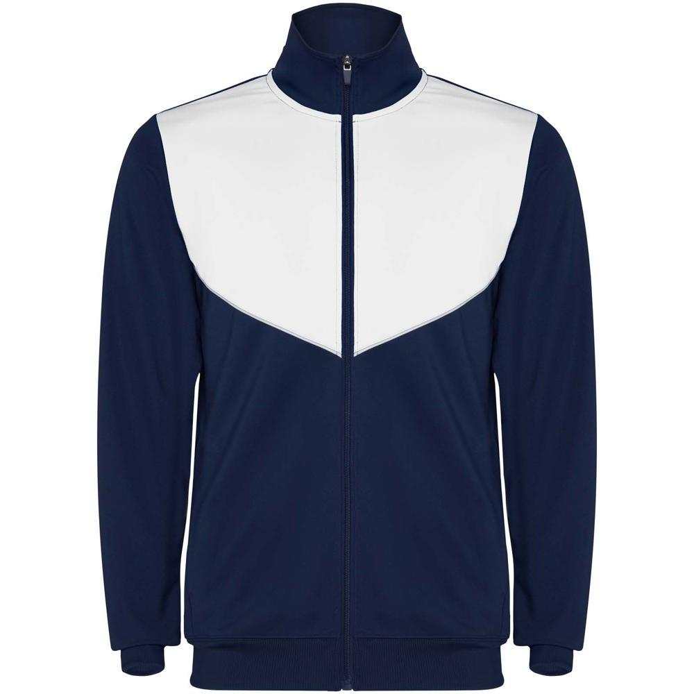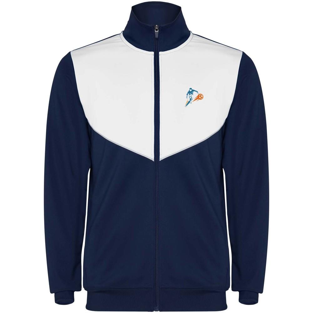 The jacket features a high collar, central front zip, side pockets, and ribbed cuffs and waist for a secure, stylish fit. Trousers include an elastic waistband with drawstring and zipped hems for practicality. Perfect for large-scale customization with your company logo, this tracksuit turns every giveaway into a powerful branding tool, fostering loyalty among young customers and families.