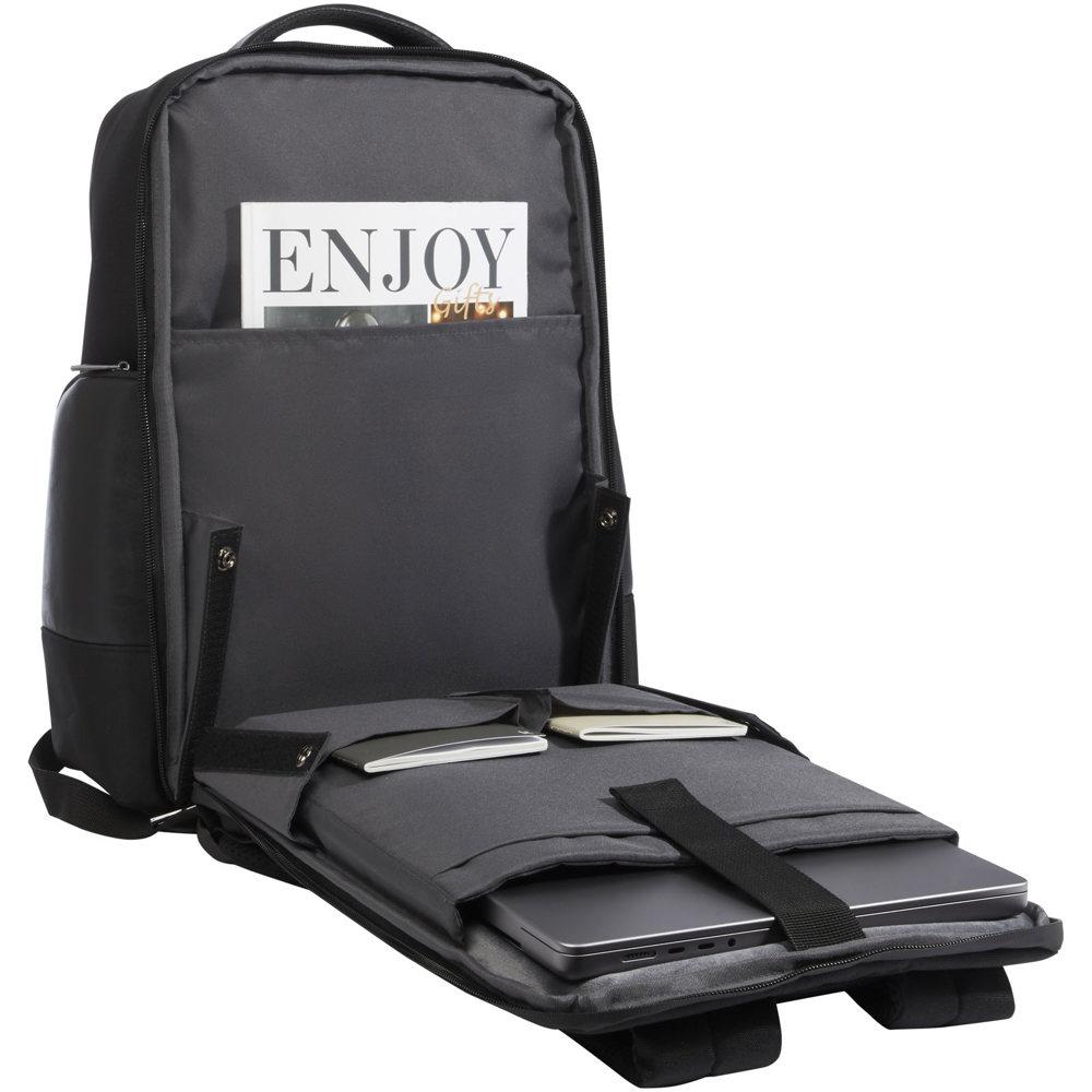 Elevate your brand visibility with the Expedition Pro 15.6" GRS certified recycled laptop backpack, a premium promotional giveaway ideal for marketing campaigns and corporate events. Crafted from durable, water-repellent 900D RPET with premium PU accents and RPET lining, this 25L backpack offers eco-friendly sustainability that aligns with modern corporate values, appealing to environmentally conscious recipients.