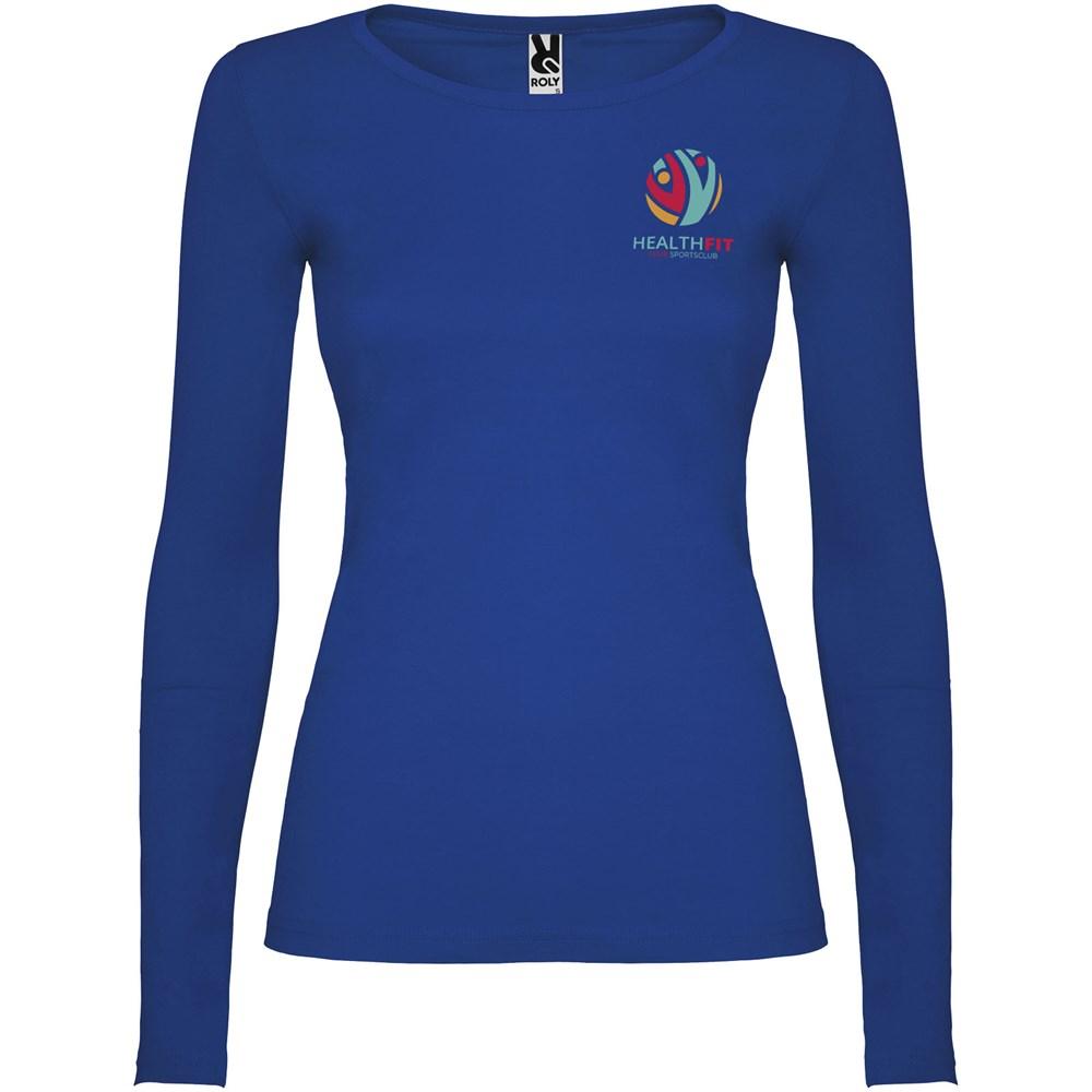 Elevate your promotional game with this semi-fitted long-sleeve women's t-shirt, designed for ultimate comfort and style. Featuring a fine trimmed neck for a sleek look, no cuffs for unrestricted movement, side seams for a flattering fit, and a removable label perfect for your custom logo printing.