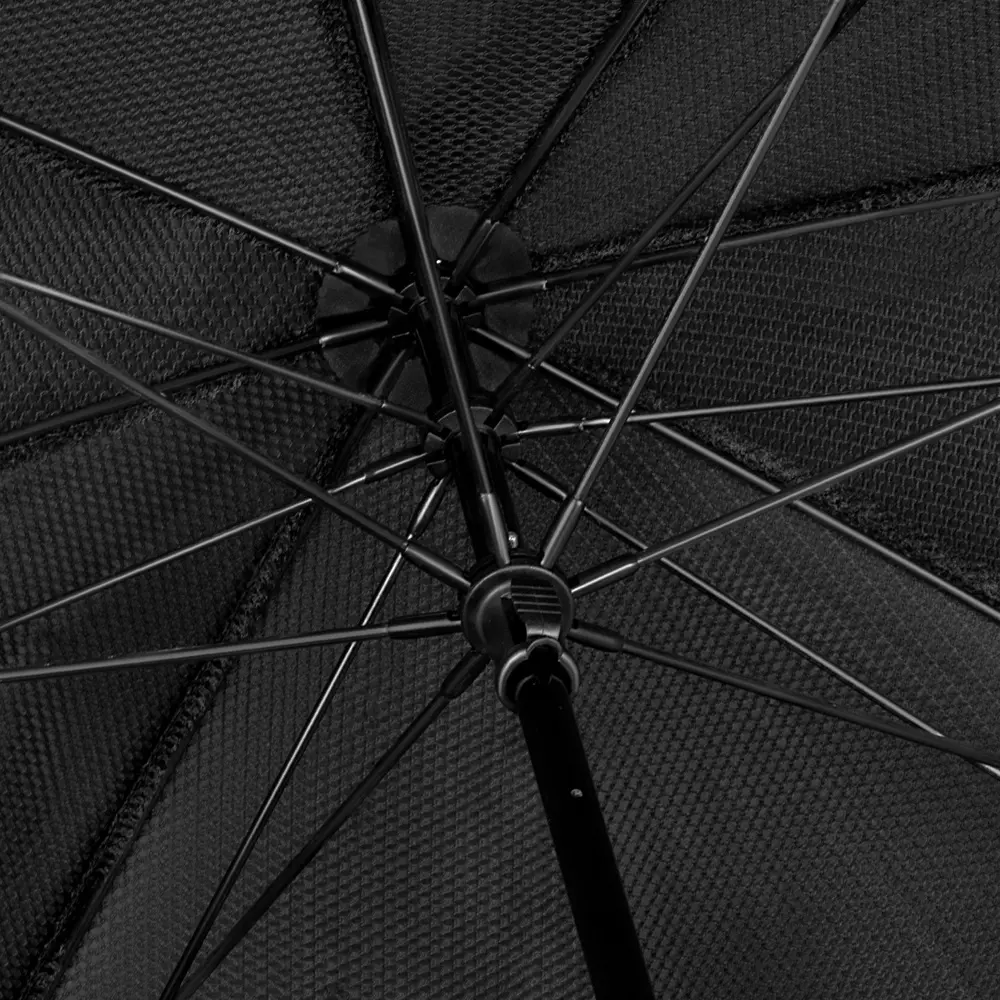 Built with a strong fiberglass shaft and double fiberglass frame, this umbrella withstands gusty conditions without compromising integrity. The polyester pongee canopy provides excellent coverage, while the straight rubber-finished handle offers a secure, comfortable grip during use.