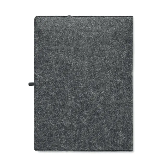 The FELTNOTE A4 conference folder is a sustainable choice for branding, made from eco-friendly RPET felt. It features a 100-sheet lined notepad of recycled paper and a convenient elastic pen holder, ideal for note-taking during meetings or events.