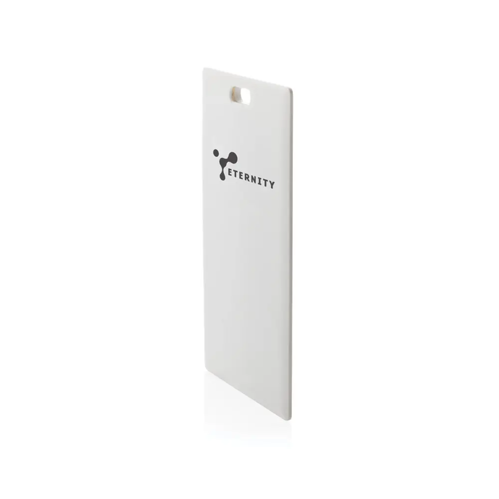 At just 2mm thick, it slips unnoticed into any wallet, made from RCS-certified recycled ABS (50% recycled content) for an eco-conscious choice that aligns with sustainable marketing. Powered by long-lasting button cell batteries, it offers up to a year of reliable performance without recharging.
