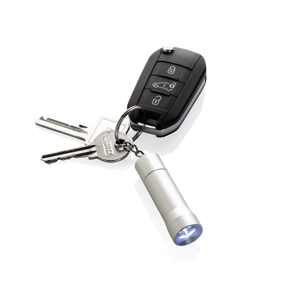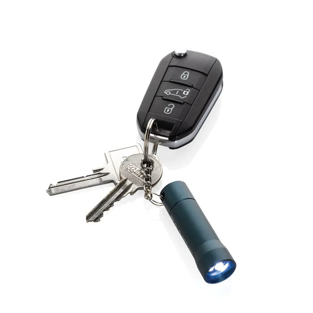 Elevate your brand's visibility with this pocket-sized LED torch, perfect for promotional giveaways. Crafted from recycled aluminum alloy, it offers a sustainable choice for marketing campaigns and events. With its keychain attachment, it's easy to carry and distribute to clients, ensuring your logo stays in sight.