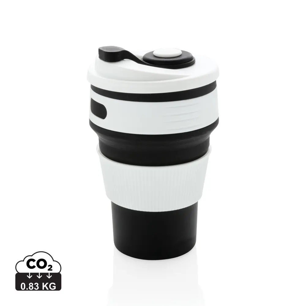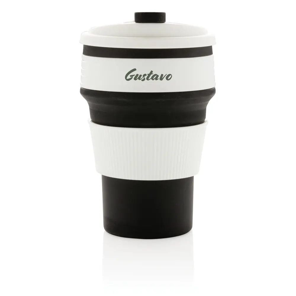 The collapsible design saves space in bags or pockets, perfect for outdoor adventures, travel, or event distribution. At 87 mm in diameter, it's compact yet spacious enough for daily beverages, encouraging repeated use and prolonged brand exposure.