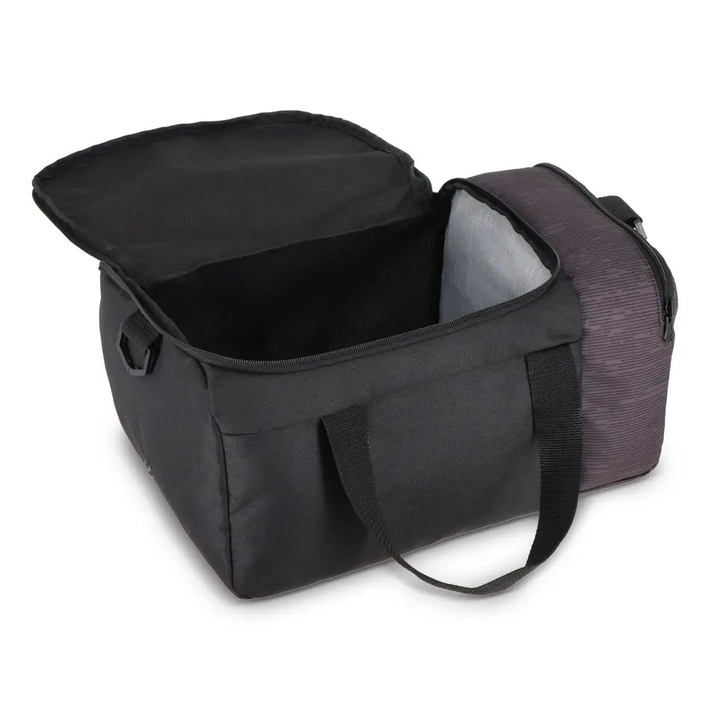 Made from recycled PET in durable 600D material, this foldable travel bag is perfect for use as an underseat bag on flights. It features a removable and adjustable shoulder strap for carrying. It is compact and convenient, ideal for travel.