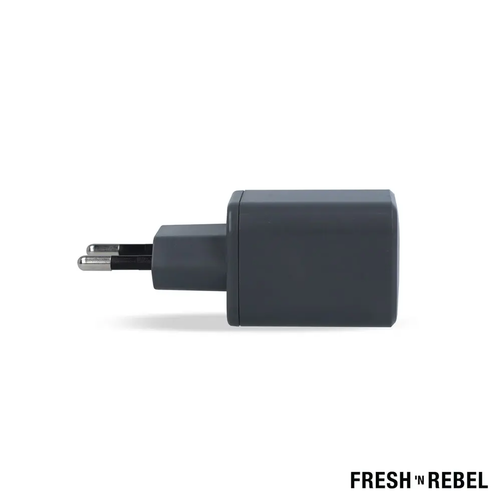 Elevate your brand with the Fresh 'n Rebel mini wall charger - USB-C & A - 30W PD, a compact powerhouse perfect for personalized promotional gifts. Featuring dual ports, including a high-speed 30W USB-C Power Delivery option, it charges smartphones, tablets, and other devices rapidly, ensuring recipients stay powered up on the go.