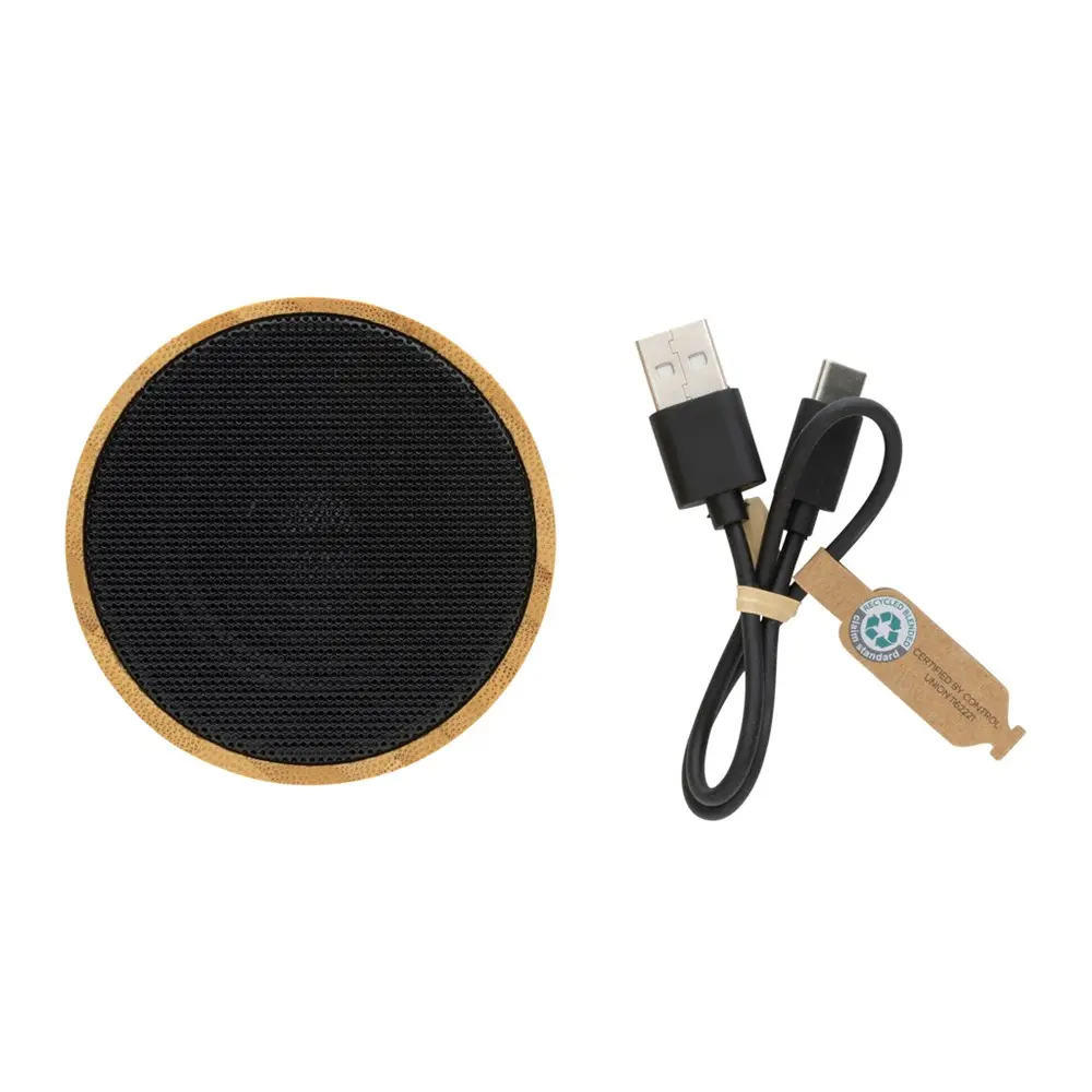 Elevate your promotional giveaways with this sustainable 3W wireless speaker, crafted from FSC® 100% bamboo casing and RCS-certified recycled ABS. With 16% total recycled content, it supports a verified supply chain for eco-conscious materials. Ideal for marketing teams and event organizers seeking branded items that resonate with environmentally aware audiences.