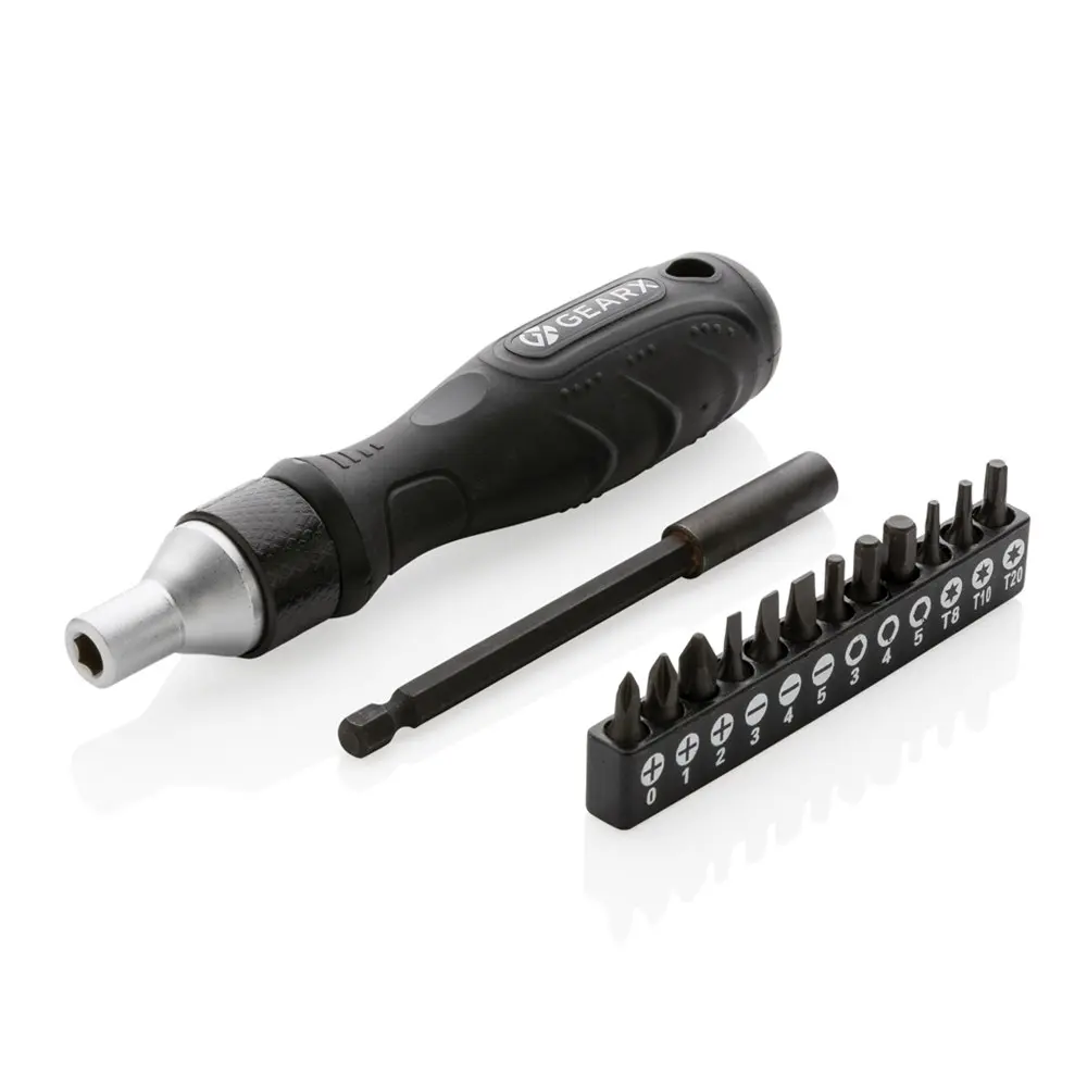Elevate your brand with the Gear X Ratchet Screwdriver, a premium promotional tool set perfect for marketing giveaways and corporate events. Crafted from durable polypropylene and thermoplastic rubber, this multifunctional screwdriver features a high-quality S2 alloy steel shaft with versatile bits including PH0/PH1/PH2, SL3/SL4/SL5, HEX3/HEX4/HEX5, TX8/TX10/TX20. The extra-strong magnet ensures easy bit attachment, making it ready for quick tasks and enhancing user convenience.