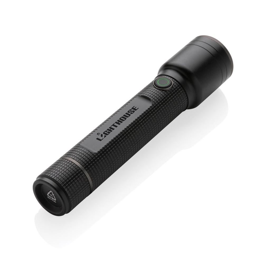 Elevate your brand visibility with this high-performance, customizable rechargeable torch, perfect for marketing campaigns, events, and corporate giveaways. Crafted from RCS-certified recycled aluminum (20% total recycled content), it combines sustainability with superior functionality, ensuring a fully traceable supply chain. Ideal for personalization with your logo, this torch serves as a practical, long-lasting promotional item that recipients will use repeatedly, keeping your brand top-of-mind.