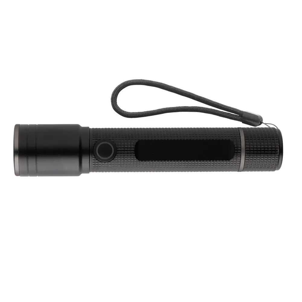 Elevate your brand visibility with this eco-friendly, customizable rechargeable torch. Ideal for marketing teams and event organizers, it features logo imprinting for personalized giveaways that leave a lasting impression on clients and attendees. Crafted from RCS-certified recycled aluminum alloy with polycarbonate accents, it combines durability, performance, and sustainability to support your corporate gifting strategy.