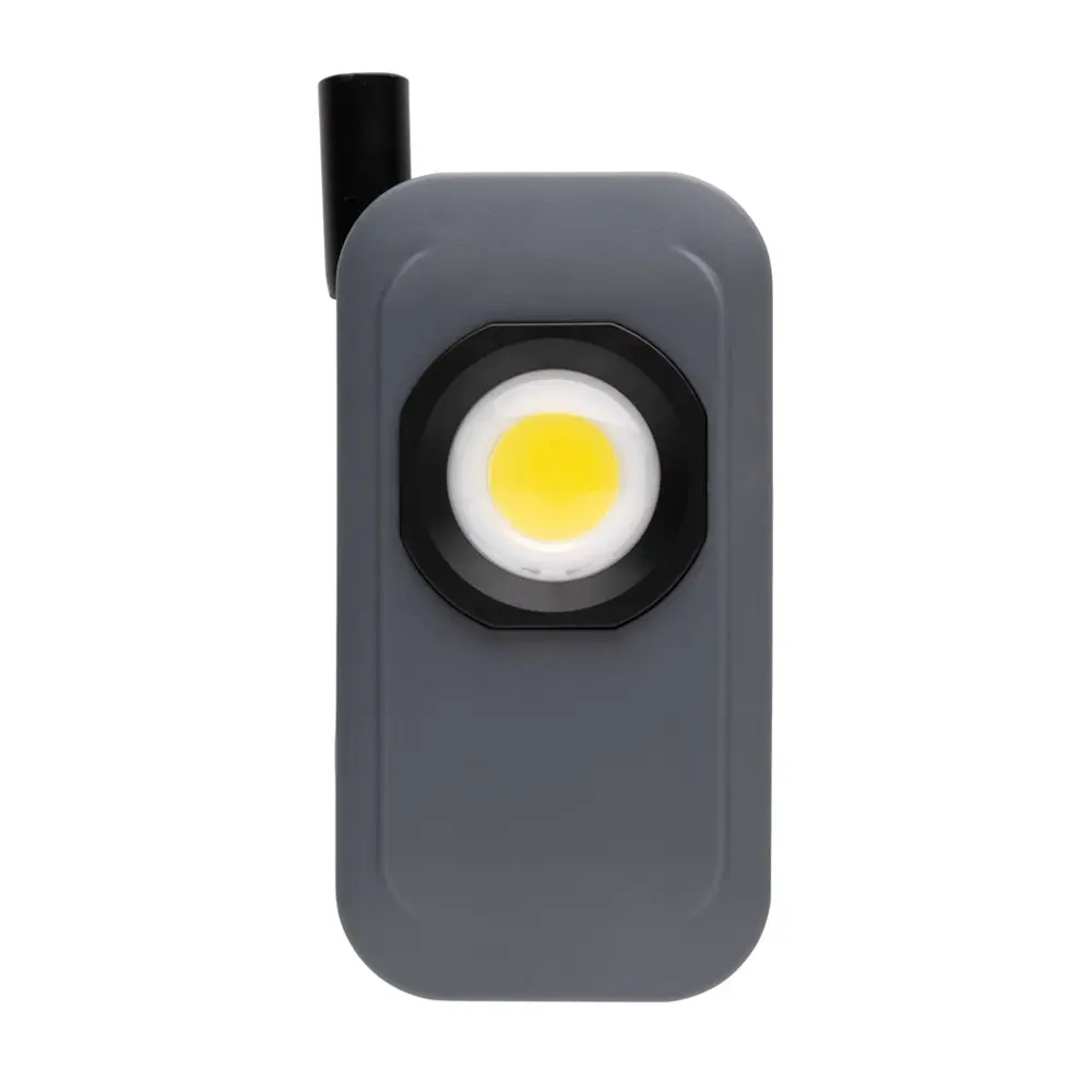 This compact work light features a powerful 260-lumen COB LED for bright illumination and an extendable 80-lumen LED for focused lighting. Choose from three modes—full LED, full COB, or 50% COB—to suit different needs, making it ideal for workshops, events, or emergency situations. The built-in magnet on the back allows hands-free attachment to metal surfaces, enhancing usability during tasks.
