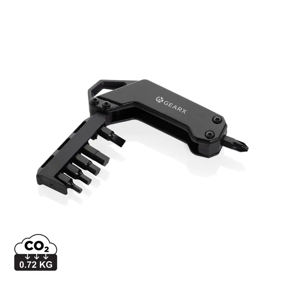 Impress your clients with the Gear X Screwdriver Tool, a compact pocket-sized essential featuring six high-quality steel bits (H3, H4, H5, H6, PH2, PH5 at 2.3cm). Its durable construction and easy portability make it perfect for on-the-go repairs, ideal for marketing professionals and event organizers distributing branded giveaways.