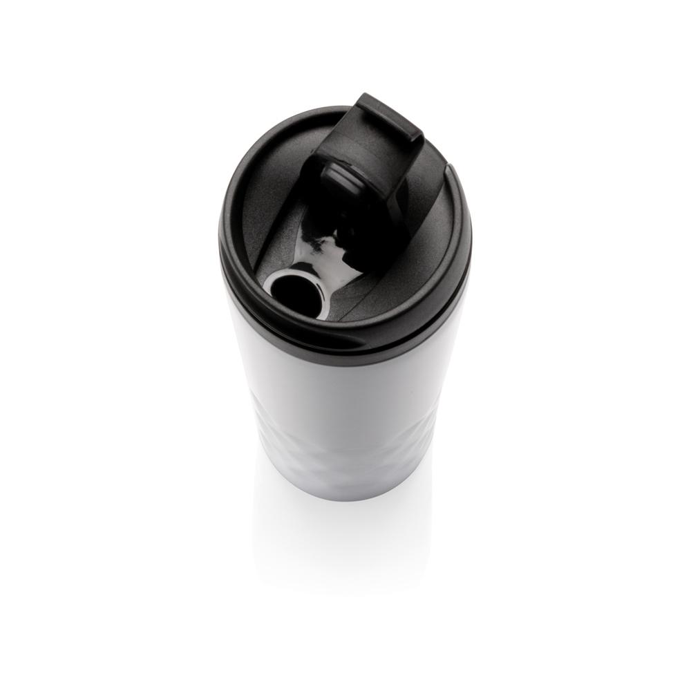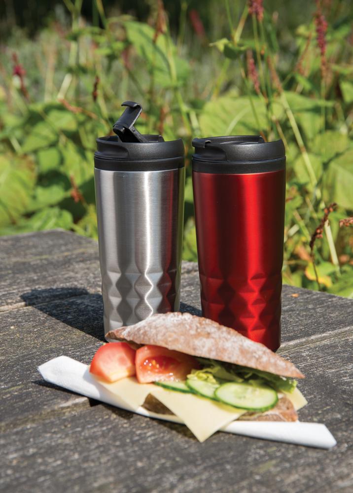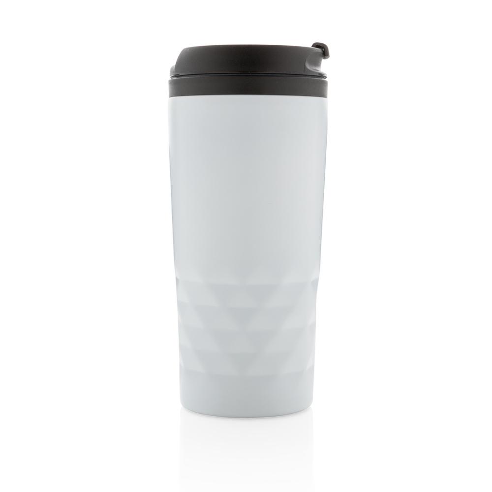Elevate your brand with this fashionable stainless steel tumbler featuring eye-catching geometric details. With a 300ml capacity and 70mm diameter, it's perfectly sized for everyday use and events. The double-wall construction—stainless steel exterior and plastic inner body—keeps beverages hot for 3 hours or cold for 6 hours, ensuring customer satisfaction.