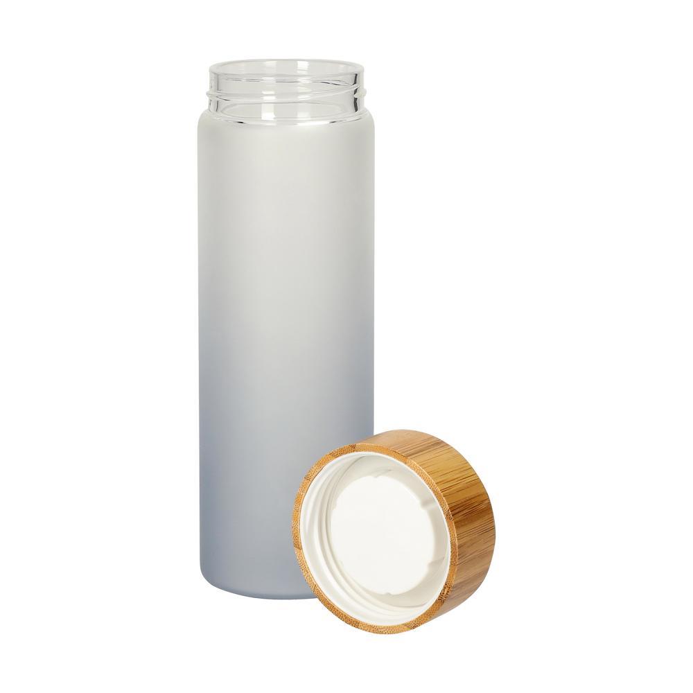 Elevate your brand with this premium 0.55 litre borosilicate glass bottle featuring a subtle frosted gradient for a striking, modern appearance. The natural bamboo screw-top lid adds an eco-friendly touch, making it ideal for custom logo printing and bulk orders.