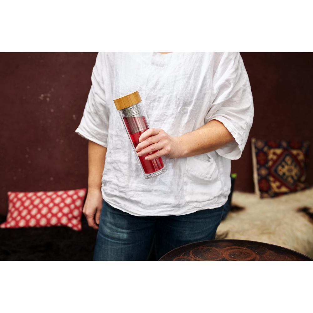 Elevate your brand with the personalized Glass bottle "Tea", a stunning borosilicate glass bottle featuring an integrated stainless steel tea strainer. Perfect for marketing professionals and event organizers, this customizable promotional gift allows seamless logo printing for maximum visibility when distributed to clients.