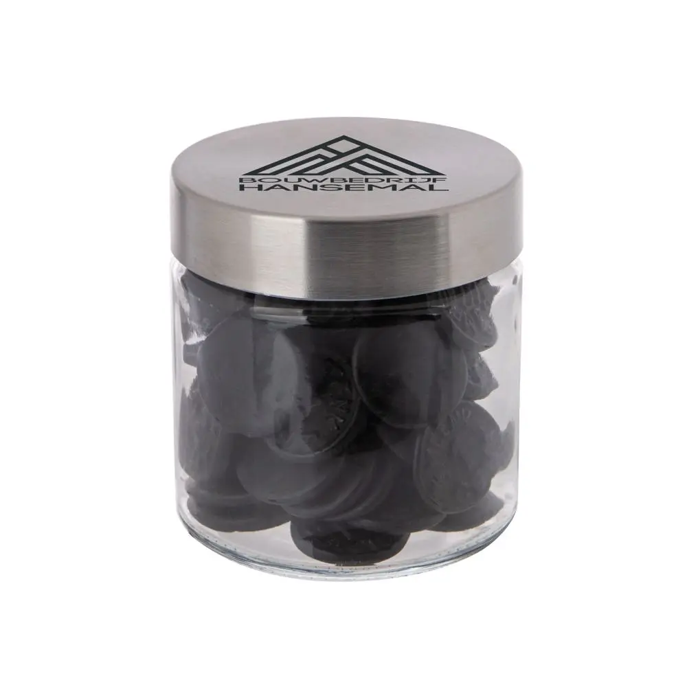 Crafted from high-quality glass with an 83mm diameter, the jar offers a premium, eco-friendly alternative to plastic packaging. The sweets provide an instant delight, while the reusable design encourages ongoing brand visibility—recipients can refill it for daily use, extending your promotional reach.