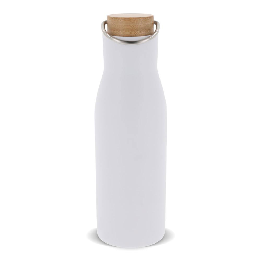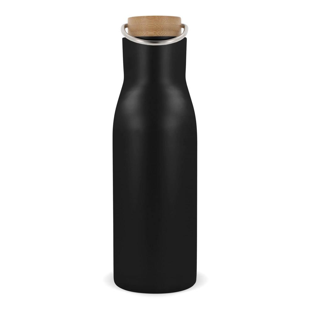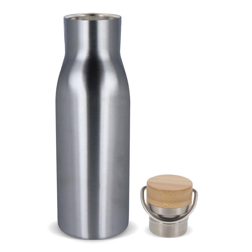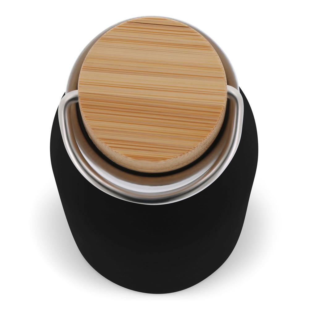 Discover the perfect promotional partner: our 500ml double-walled vacuum insulated thermo bottle with a premium bamboo lid and sleek matte coating for a contemporary touch.