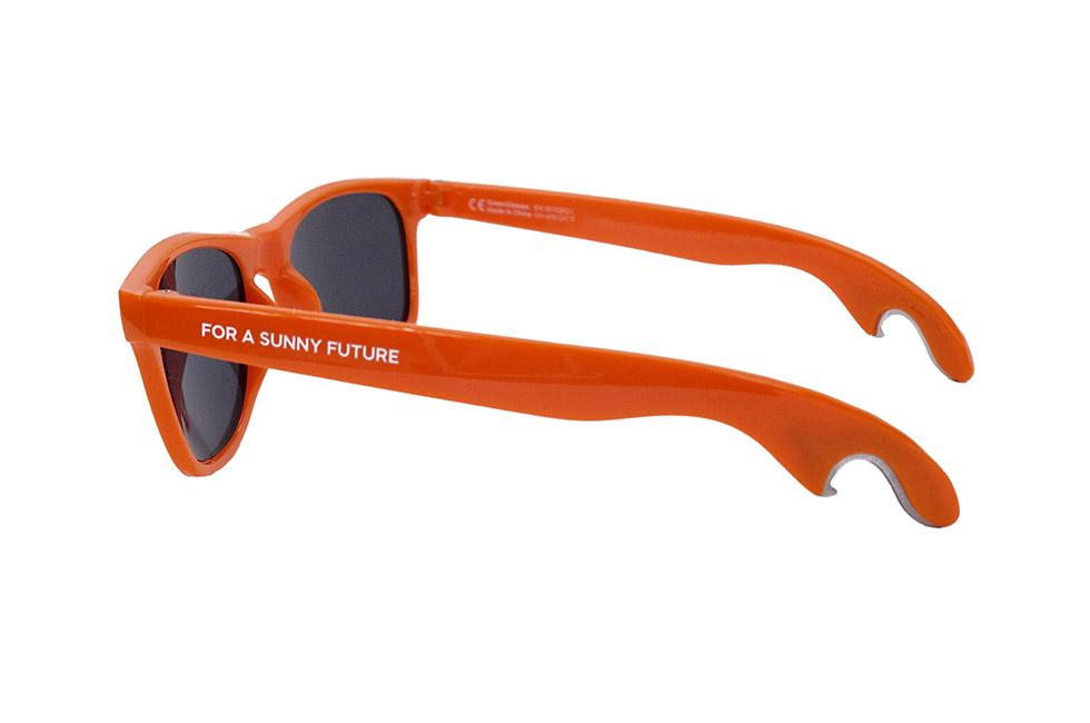 The innovative design includes a functional bottle opener integrated into both temples—ideal for outdoor events, festivals, or client appreciation gifts where convenience meets branding opportunity. Customize with your logo on the frames or temples to maximize visibility and leave a lasting impression on recipients.