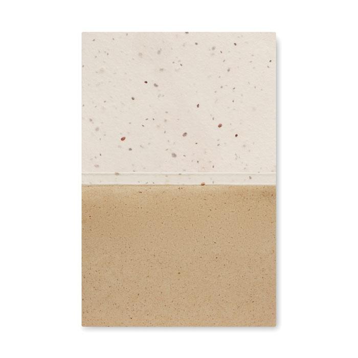 Elevate your brand with the GROW ME - Grass/seed paper memo pad, a sustainable promotional gift perfect for marketing campaigns and events. This innovative soft cover memo block features 50 sticky grass paper sheets, mimicking traditional sticky notes for jotting down reminders that adhere reliably anywhere.