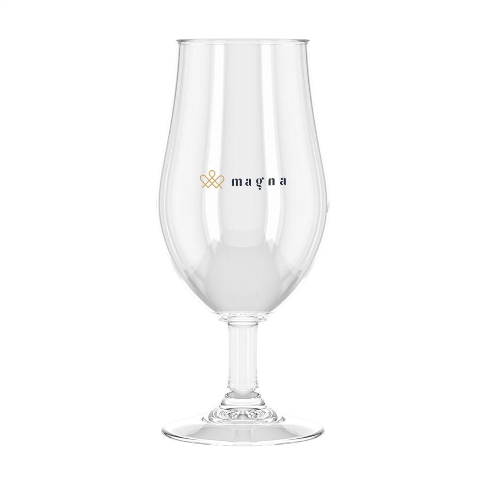 Elevate your brand at events with the HappyGlass Mister Gustav Beer Glass Tritan 500 ml, a stemmed tulip-shaped glass specially designed for serving chilled specialty beers. Its elegant shape enhances aroma and flavor, making every sip memorable for your guests.