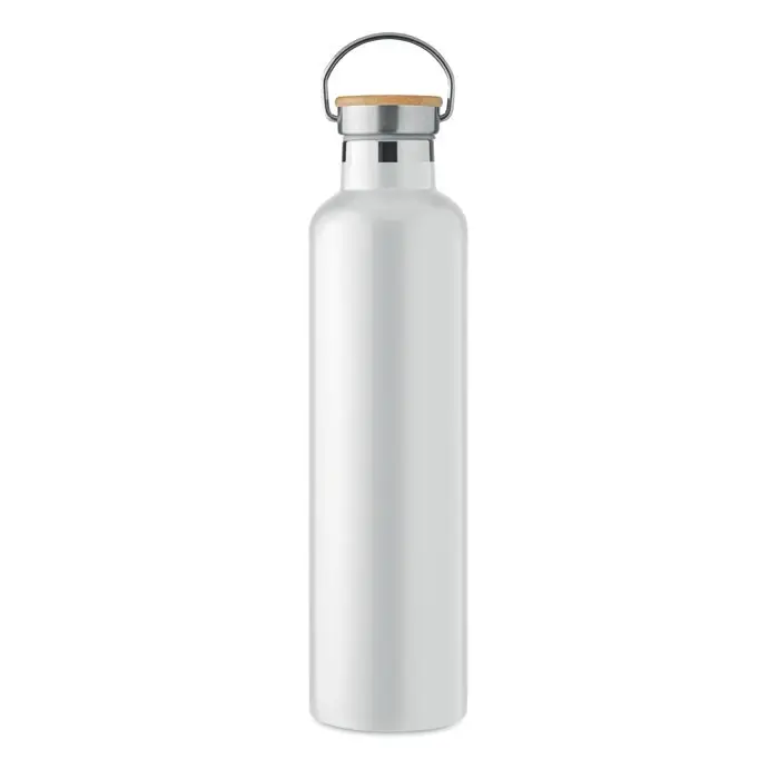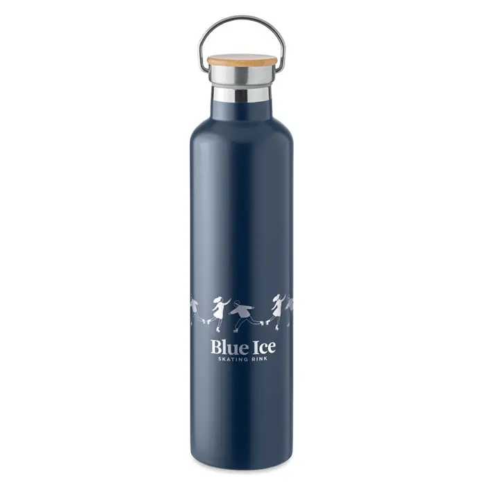 Crafted from durable stainless steel with a natural bamboo lid and convenient carry handle, this 1L capacity flask emphasizes eco-friendliness. Bamboo, as a renewable resource, adds a touch of sustainability to your branded items, appealing to environmentally conscious audiences without compromising on style or functionality.