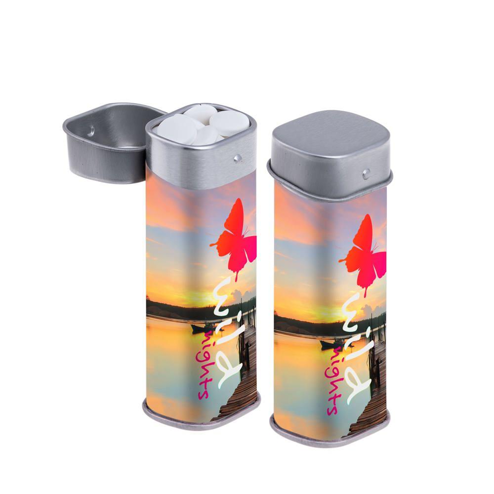 Elevate your promotional game with our premium high tin, featuring a full-colour custom printed label perfect for showcasing your logo. Filled with approximately 30 grams of sugar-free mints and sealed for lasting freshness, it delivers a practical, healthy giveaway that keeps your brand top-of-mind.