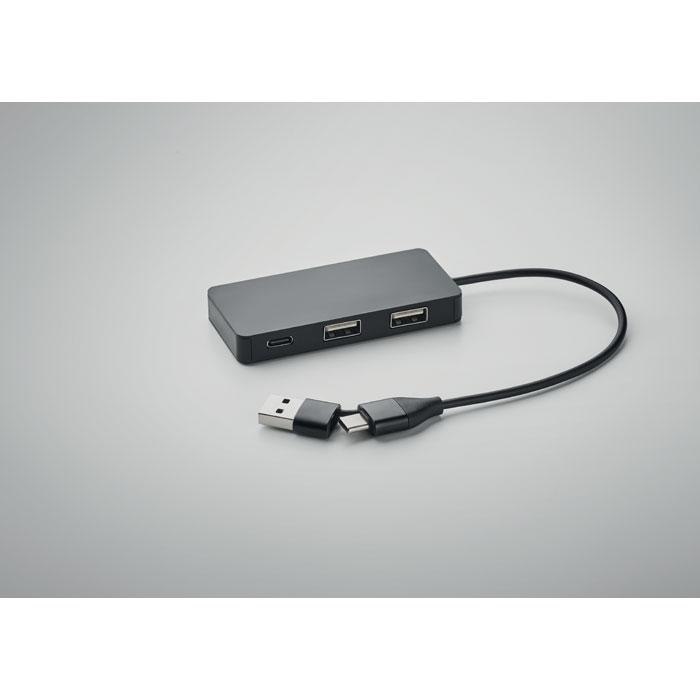 Enhance your promotional giveaways with the HUB-C, a compact 3-port USB hub featuring a 20cm cable crafted from recycled aluminum for eco-conscious branding.