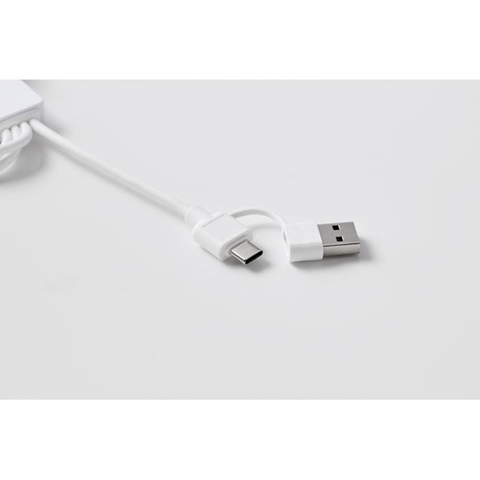 Elevate your brand visibility with the ICAB - 2 in 1 charging cable type-C, a versatile key ring accessory designed for promotional giveaways. This compact charger features a 2-in-1 input (Type-C and Type-A) and multi-output compatibility, including Samsung® and Apple® watch charging, dual Type-C ports, and micro-B via a 2-in-1 pin setup.