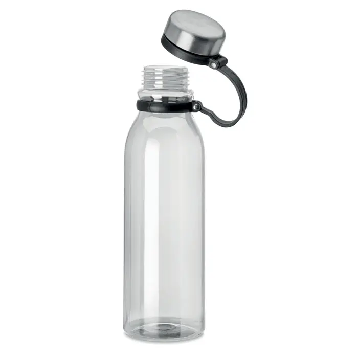Crafted from recycled RPET material, the bottle features a durable stainless steel lid and a comfortable TPR grip for secure handling. It's completely BPA-free and designed to be leak-proof, ensuring no spills during transport or distribution.