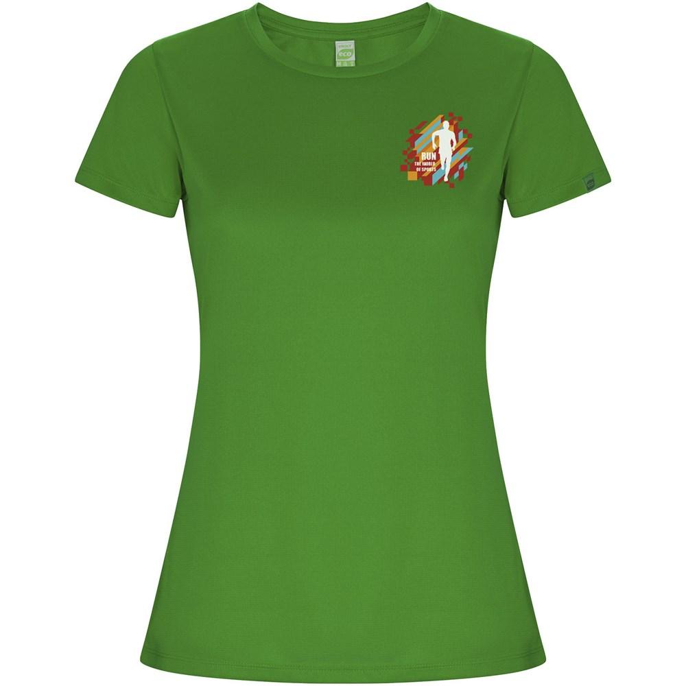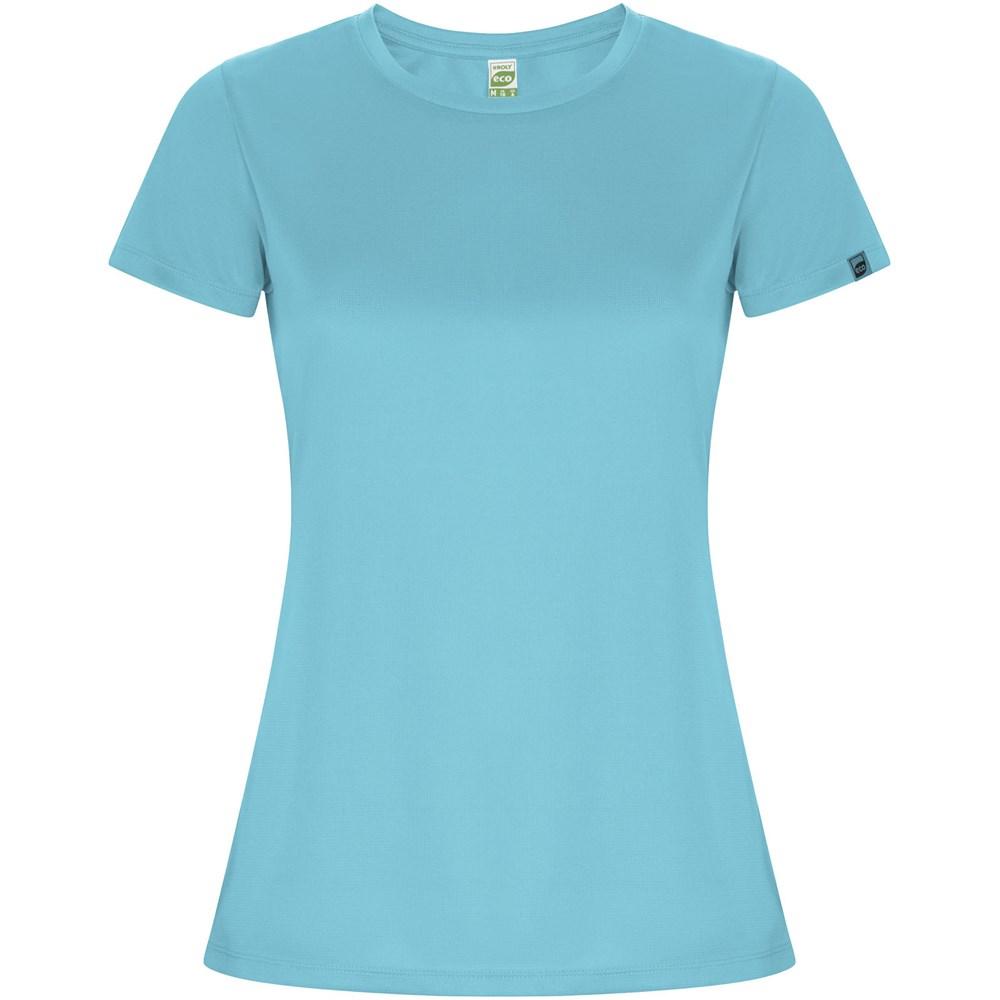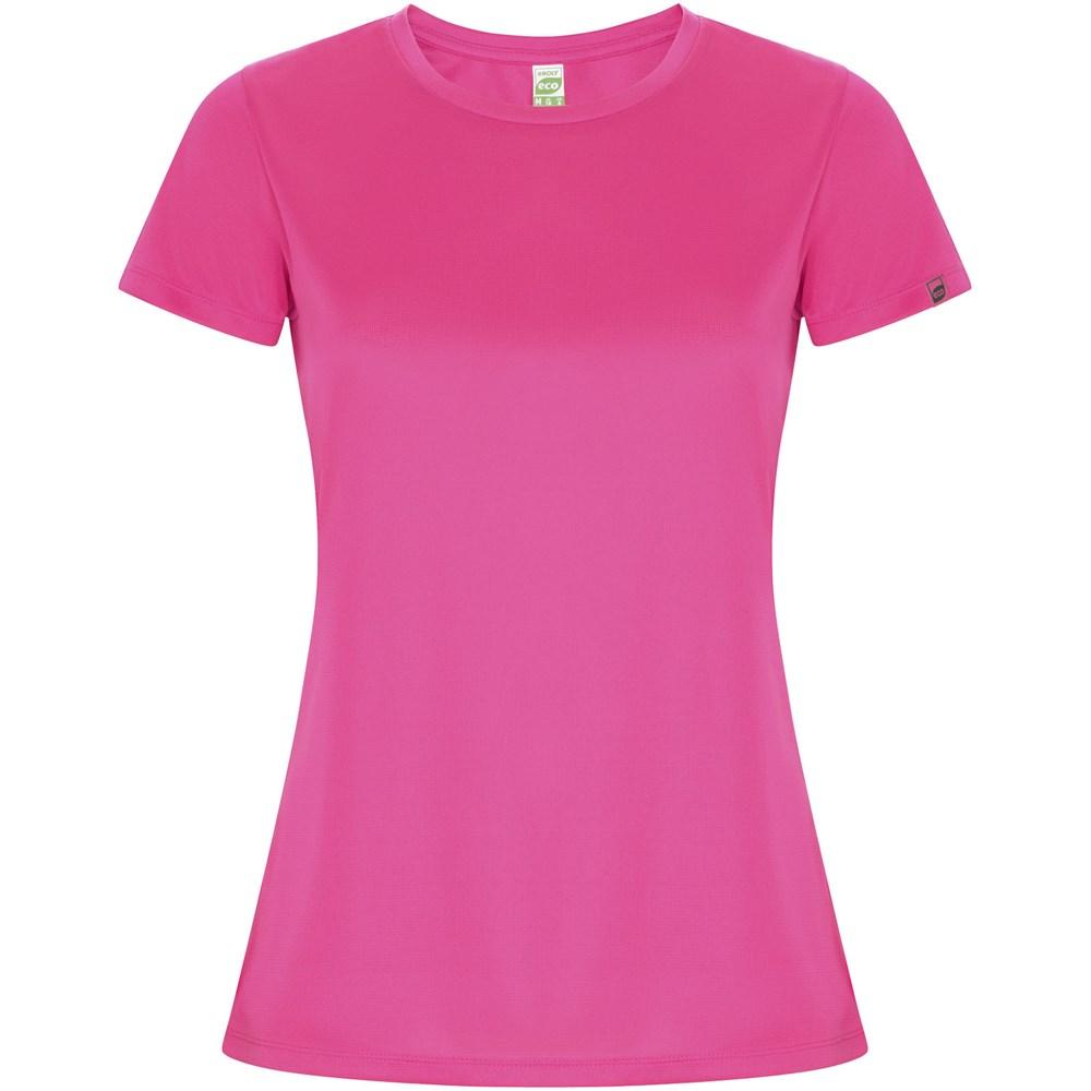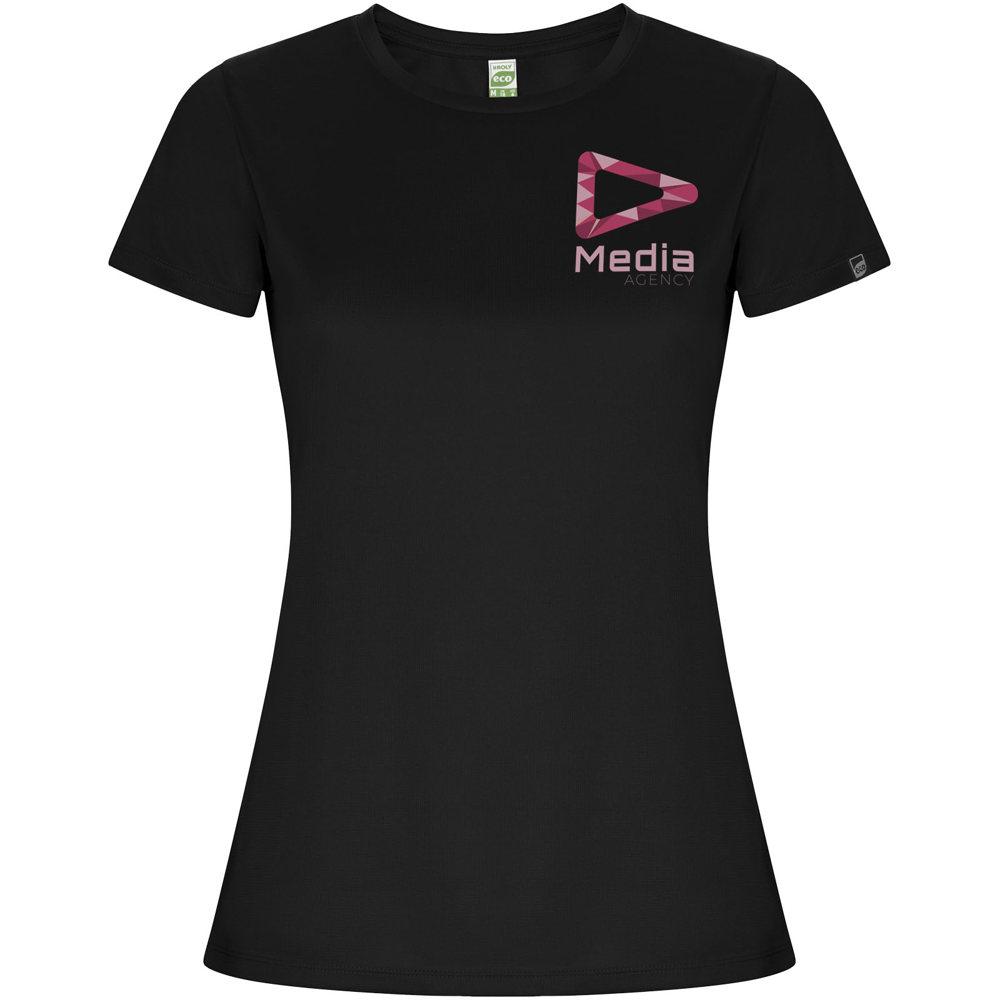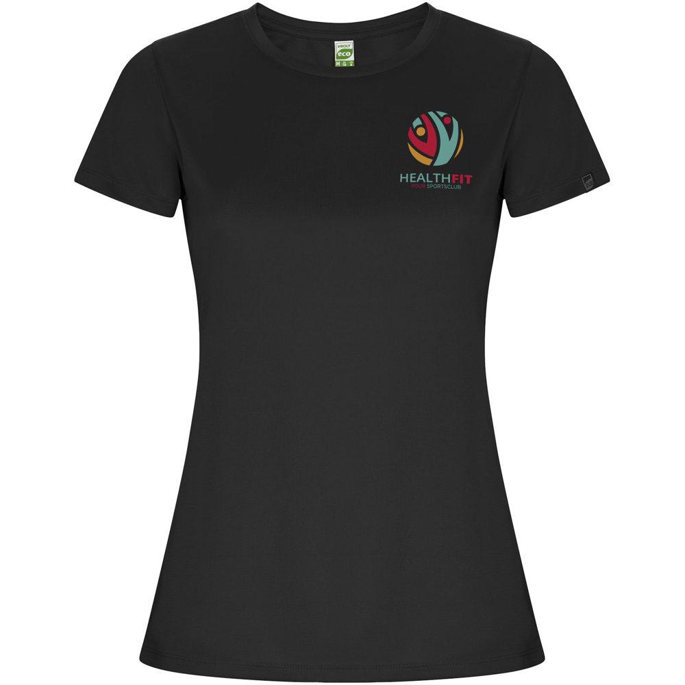 Imola short sleeve women's sports t-shirt – Elevate your promotional campaigns with this fitted technical tee, engineered from recycled CONTROL-DRY polyester for exceptional moisture-wicking performance and all-day comfort. The crew neck design with matching covered seams ensures a sleek, professional finish, while the ECO logo label on the sleeve and removable ECO label highlight your brand's sustainability focus.