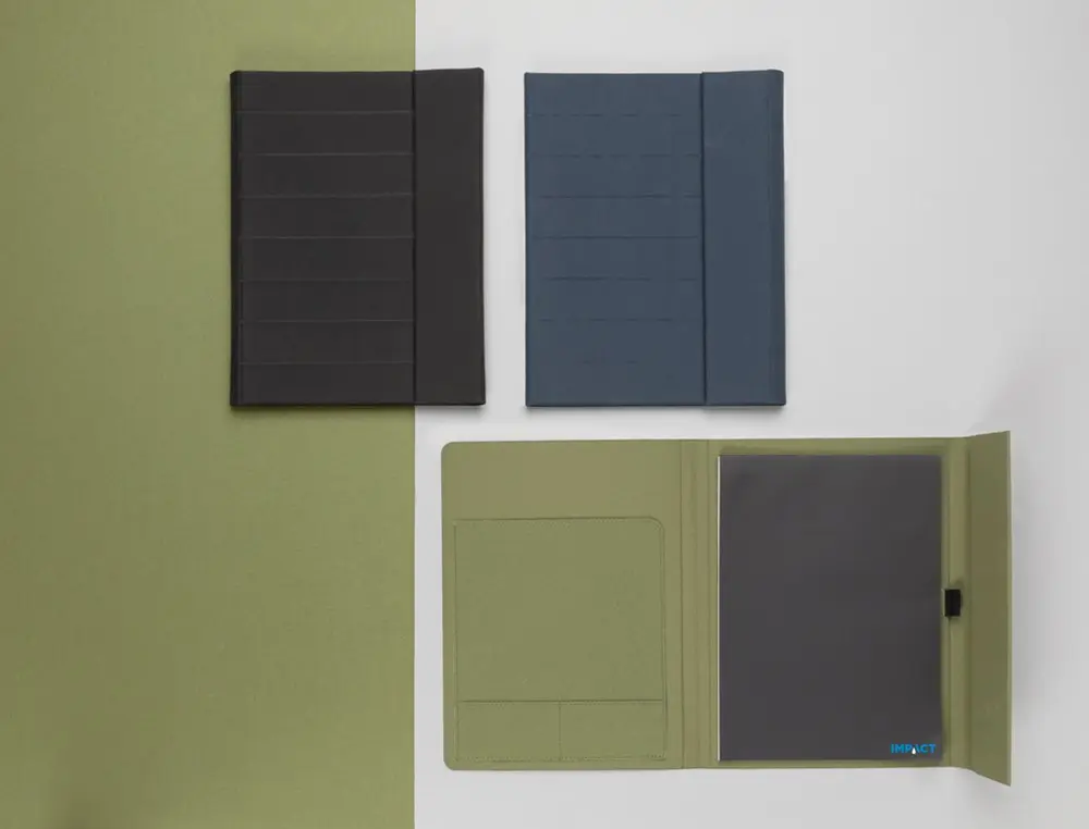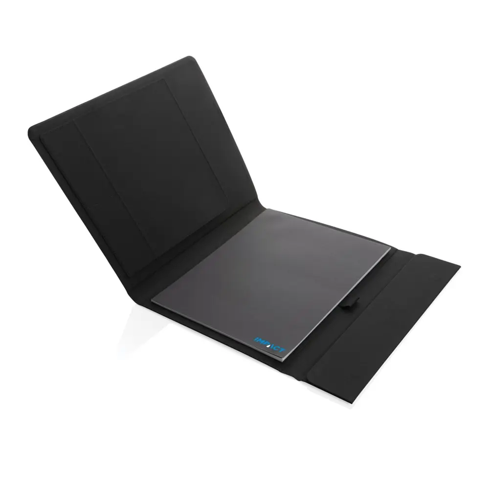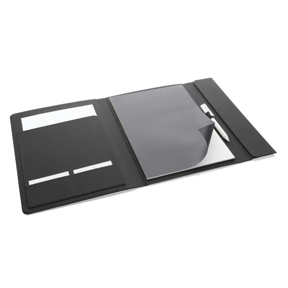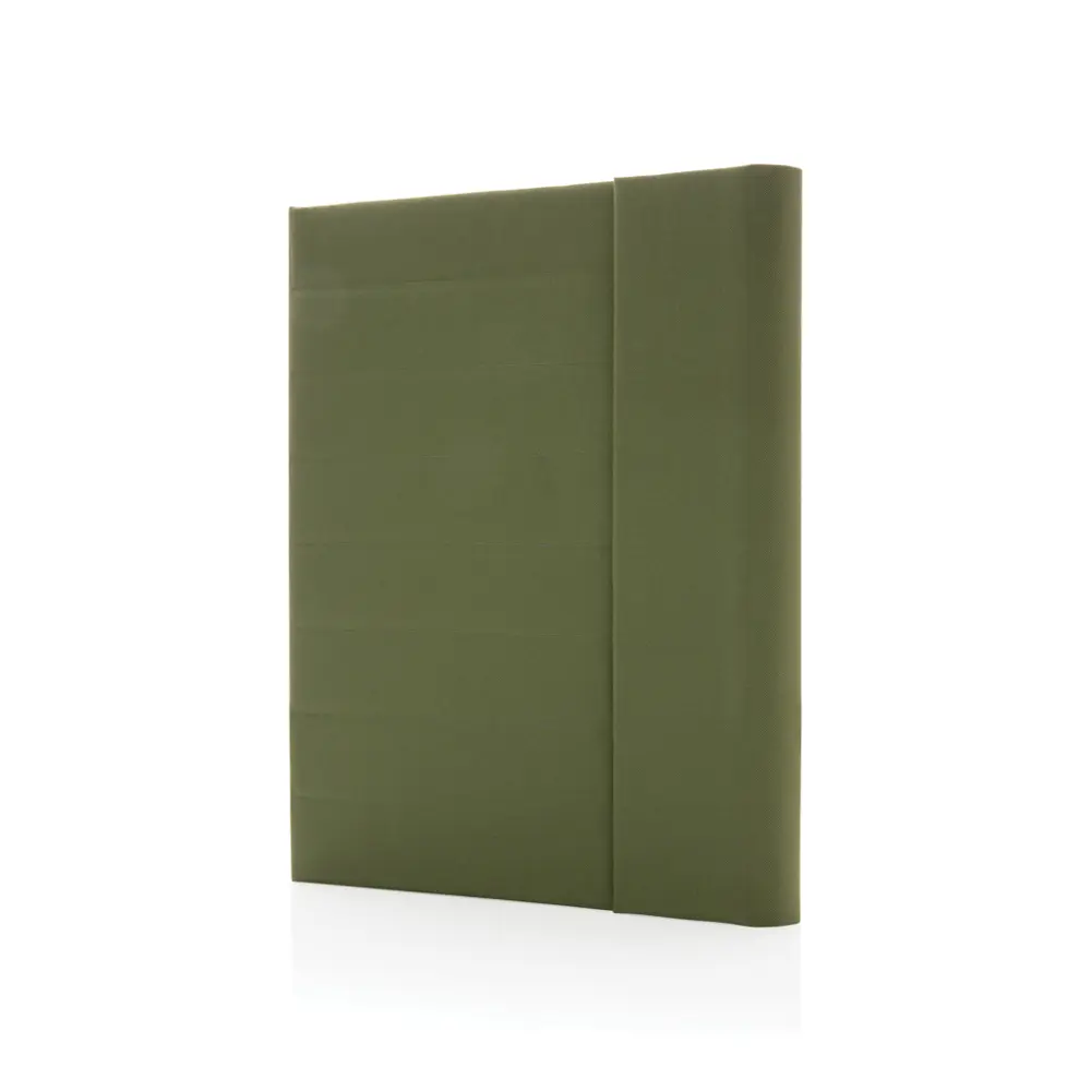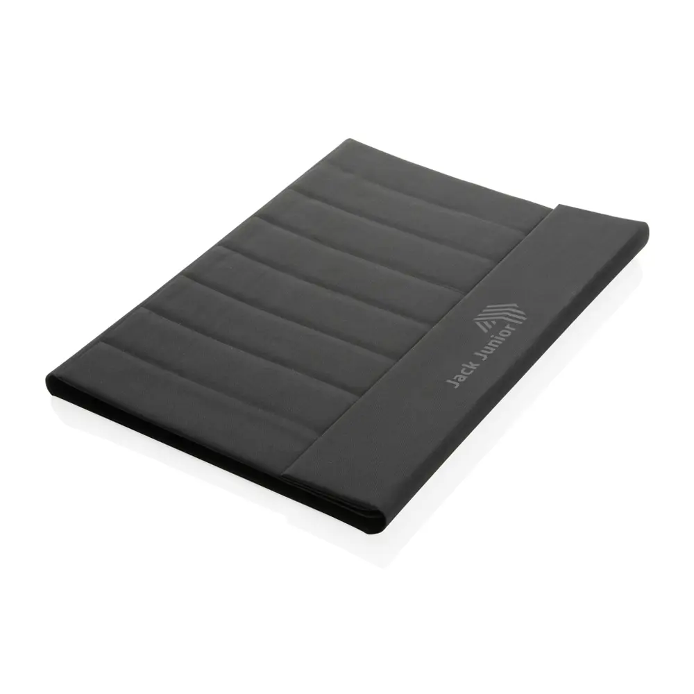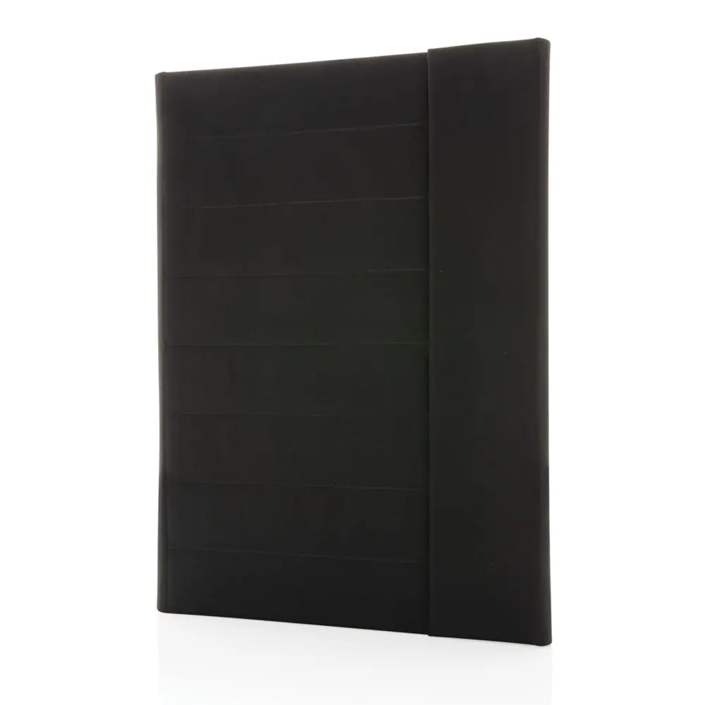 Elevate your branding with this eco-conscious A4 portfolio designed for professionals on the move. Crafted from 100% recycled polyester, it features a secure magnetic closure for effortless access and a polished look that impresses clients and colleagues alike.