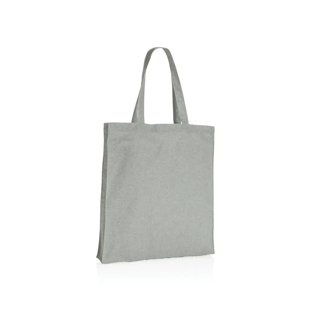 Elevate your promotional efforts with this versatile recycled tote bag, perfect for marketing professionals and event organizers seeking impactful, eco-conscious giveaways. Crafted from 70% recycled cotton and 30% recycled polyester, it offers a spacious 12-liter capacity with a 6cm gusset for added storage, making it ideal for carrying essentials at events or as a branded client gift.
