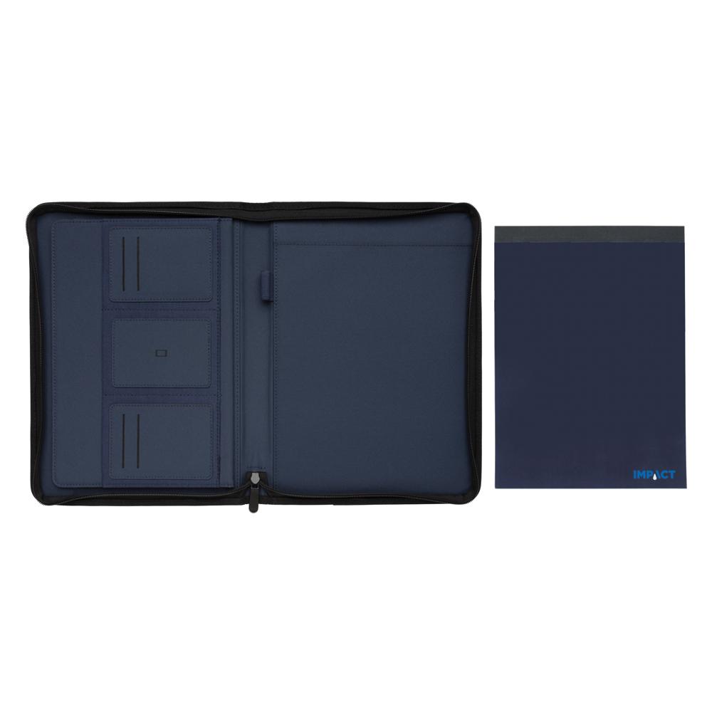 Elevate your brand's sustainability story with this A4 portfolio with zipper from the Impact collection, featuring AWARE™ tracer technology. Guaranteed recycled polyester fabric and verified water savings through blockchain-backed claims—choosing this item saves 6 litres of water and reuses 10 plastic bottles. Plus, 2% of proceeds support Water.org, aligning your promotions with genuine environmental impact.