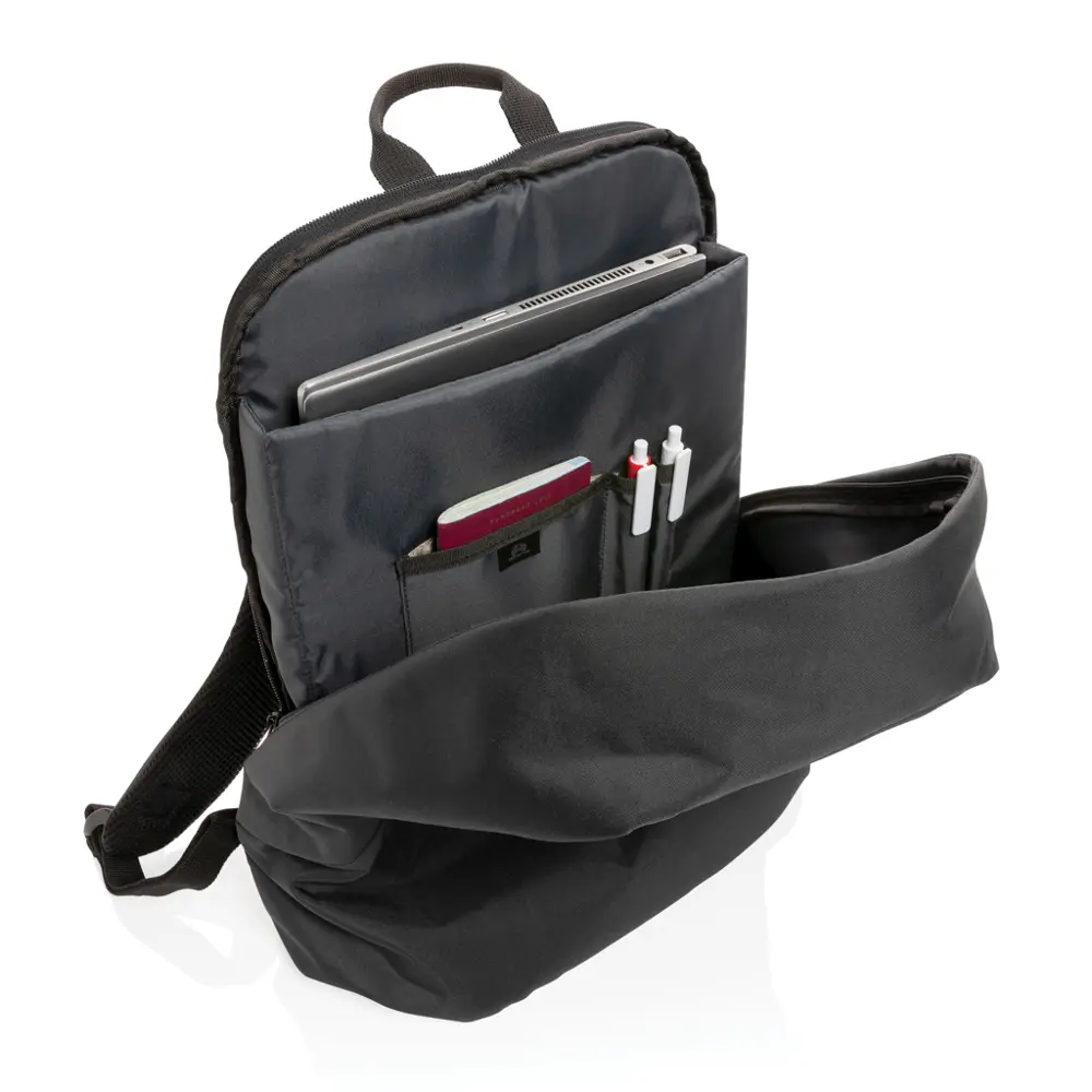 Enhance your brand visibility with our customizable Impact AWARE™ RPET anti-theft backpack, perfect for marketing campaigns and events. This 20L lightweight, durable design safeguards daily essentials, including a 15.6" padded laptop pocket and RFID-protected sleeve for secure travel. The minimalist style features a luggage strap for convenience, making it ideal for professionals on the go.