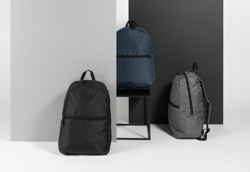 Ideal for personalization with your company logo, this stylish basic backpack holds daily essentials securely. Its convenient front zipper pocket adds practicality for recipients, making it a memorable promotional item that aligns your brand with sustainability.