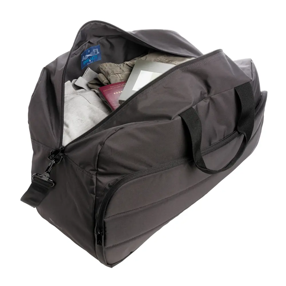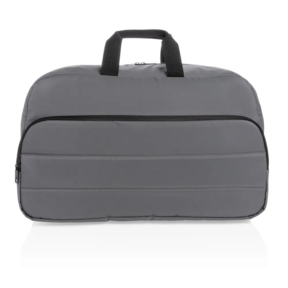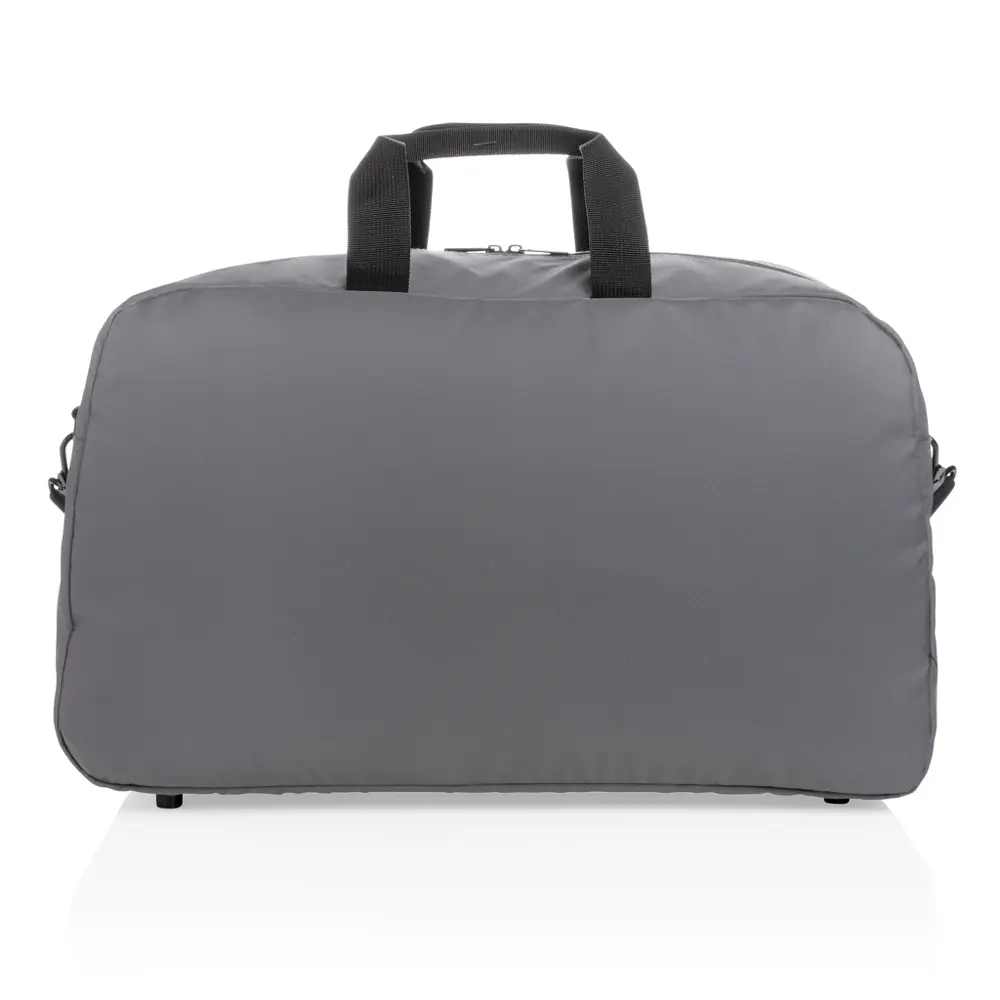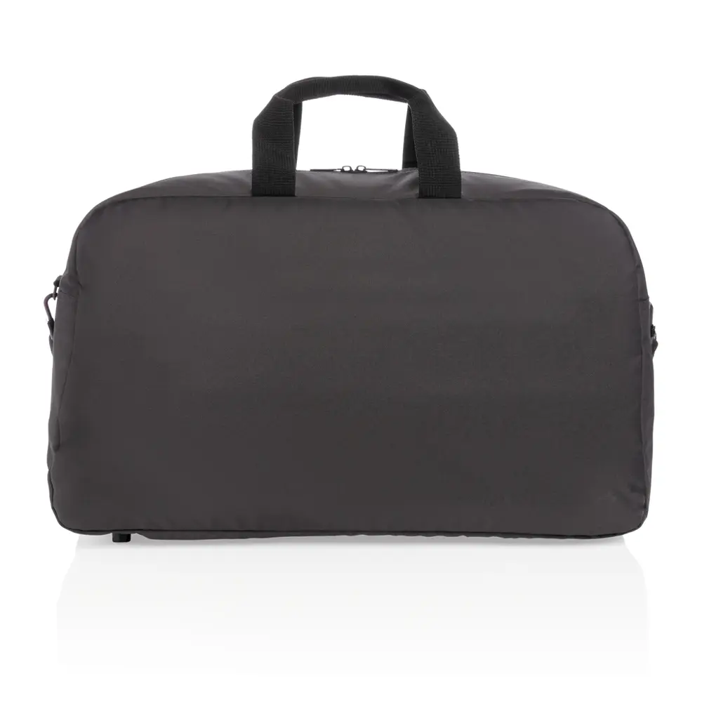 Elevate your brand's sustainability story with our personalized Weekend Duffel Bag from the AWARE™ Impact collection. Made from 100% recycled polyester (rPET), it uses verified recycled fabrics and blockchain technology to ensure genuine eco-benefits: each bag saves 27 liters of water and reuses 45 plastic bottles. PVC-free and compliant with AZO dyes, cadmium, lead, PAHS, phthalates, and nickel release standards, it's a responsible choice for corporate gifting.