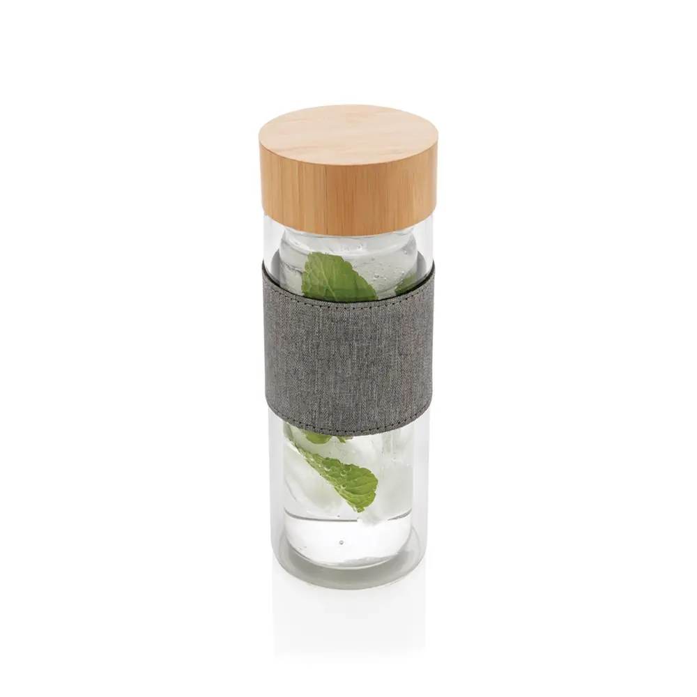 Elevate your brand's sustainability efforts with the Impact double wall borosilicate glass bottle, a premium choice for personalized promotional gifts. Crafted from durable borosilicate glass and bamboo, this 360ml BPA-free bottle is designed for reusability, reducing plastic waste and supporting eco-conscious hydration. Its double-wall insulation handles thermal shocks, making it ideal for hot beverages like tea, while the stylish sleeve adds a professional touch.