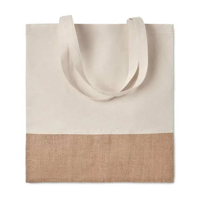 Enhance your promotional efforts with this versatile twill cotton shopping bag, perfect for businesses and events. Crafted from high-quality 160 gr/m² cotton with eco-friendly jute details, it offers a sturdy and stylish option for carrying essentials. The long handles ensure comfortable carrying, making it ideal for everyday use or giveaways.